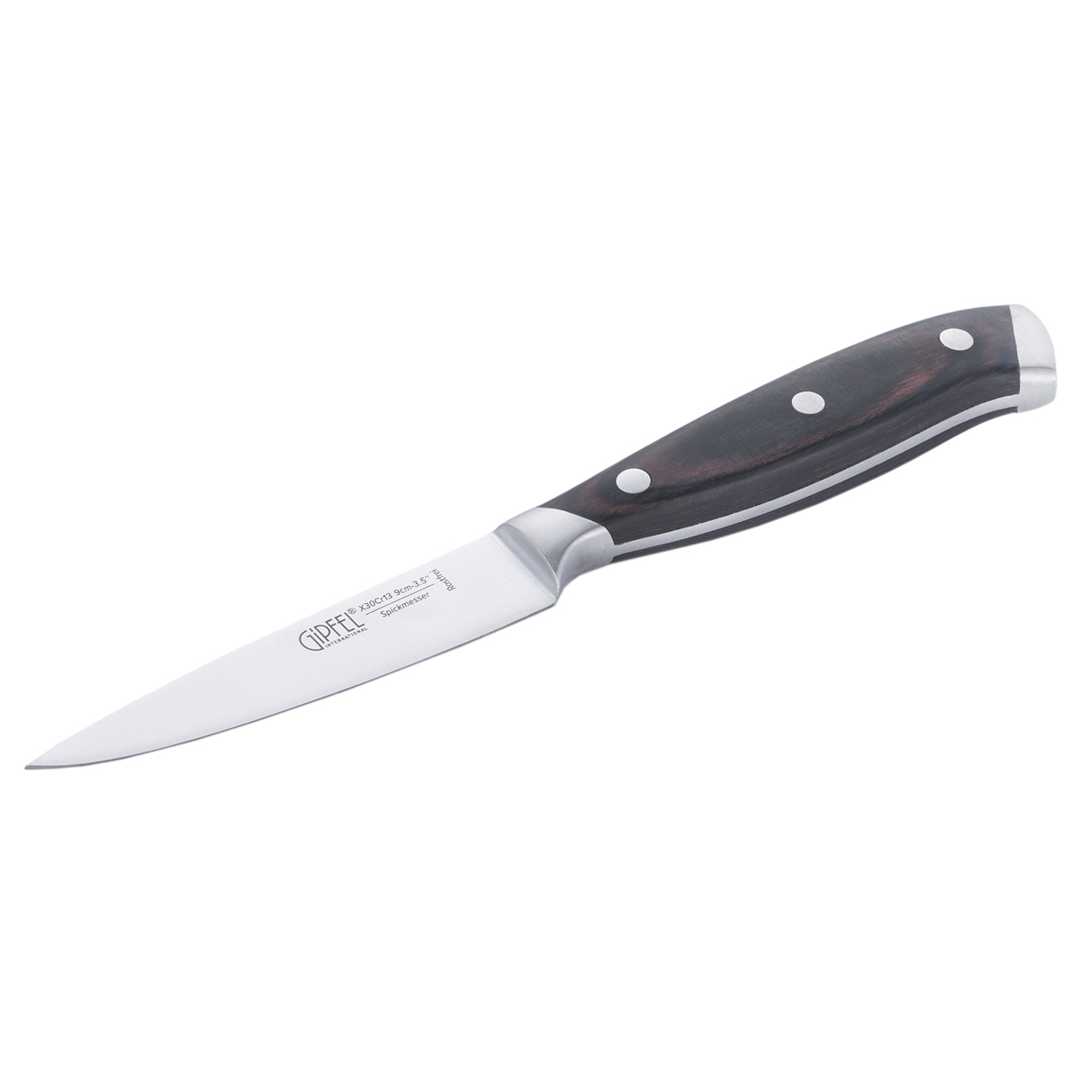 Нож для чистки овощей Gipfel KASSEL 6814 9 см. Материал лезвия: сталь X30Cr13. Материал ручки: сталь, древеснослоистый пластик. Толщина: 2 мм.