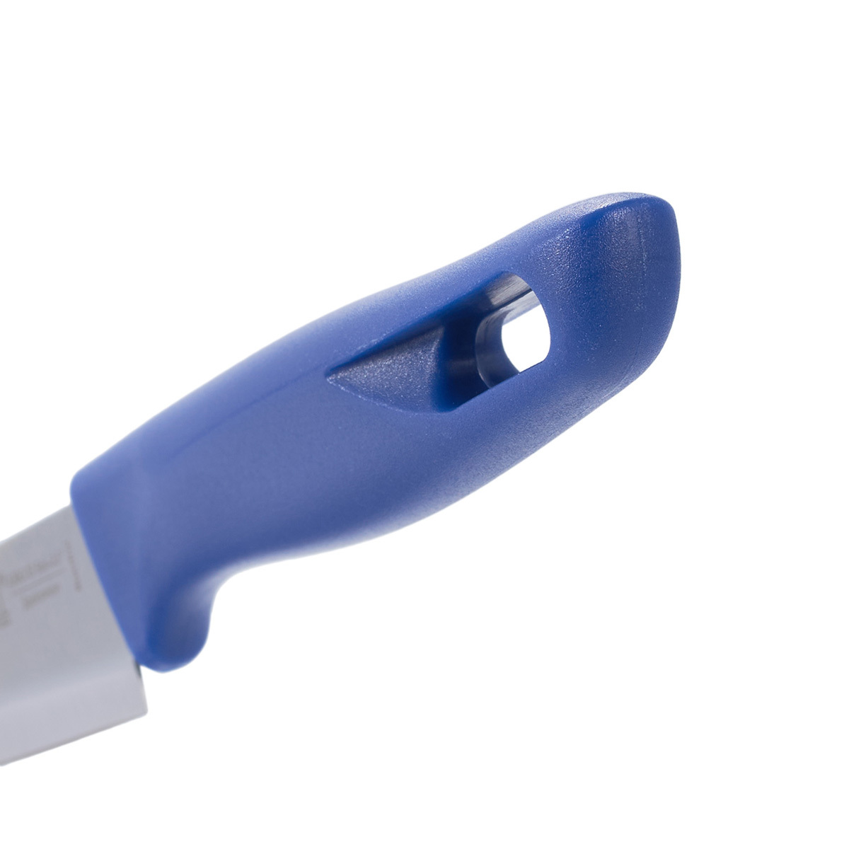 Ручка и защитный чехол темно-синего цвета, изготовлены из пластика. Нож удобно хранить и транспортировать.