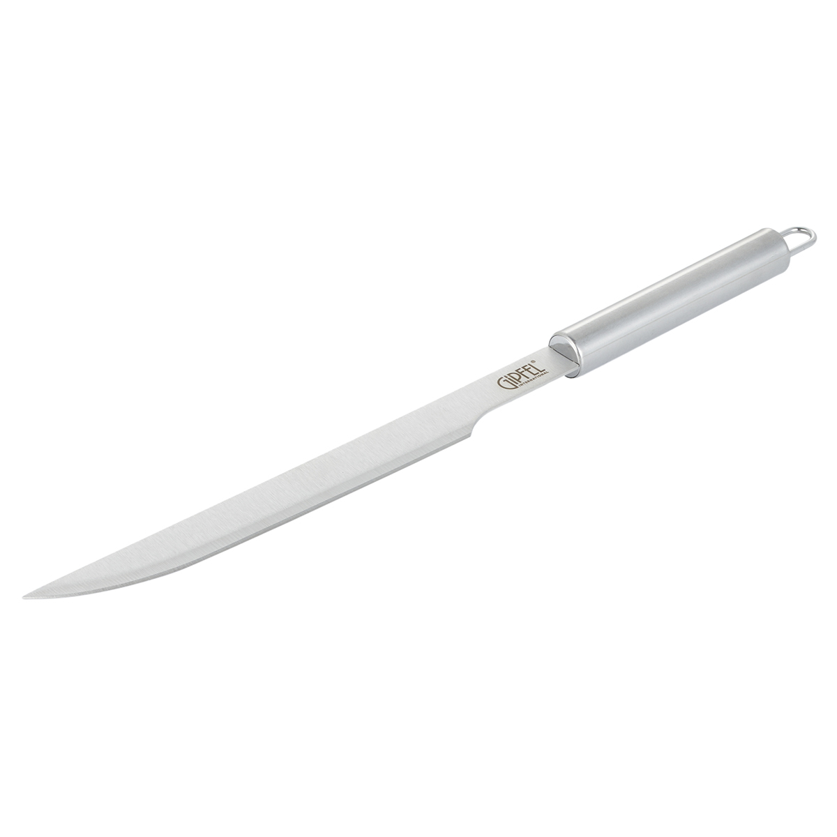Нож для мяса GIPFEL BRIG 51257. Длина 37,5 см. Инструмент сделан из нержавеющей стали 2Cr14. Толщина 1,5 мм. На ручке имеется петля для подвешивания.