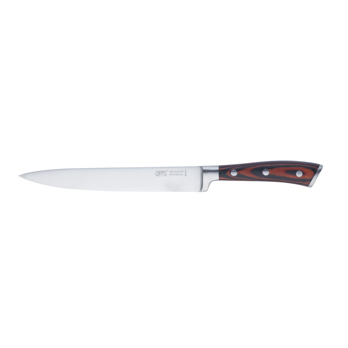 8428 GIPFEL Нож для мяса (Слайсер) LAFFI 20,5см/2,5мм Материал: Лезвие: Нержавеющая сталь 3Cr13, Отделка клинка: лазерная, Ручка: Нержавеющая сталь SS430, Pakka wood
