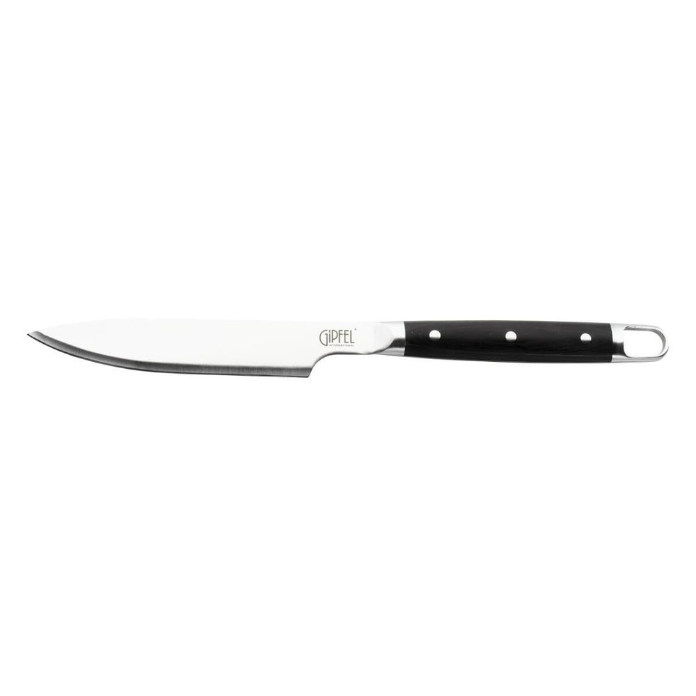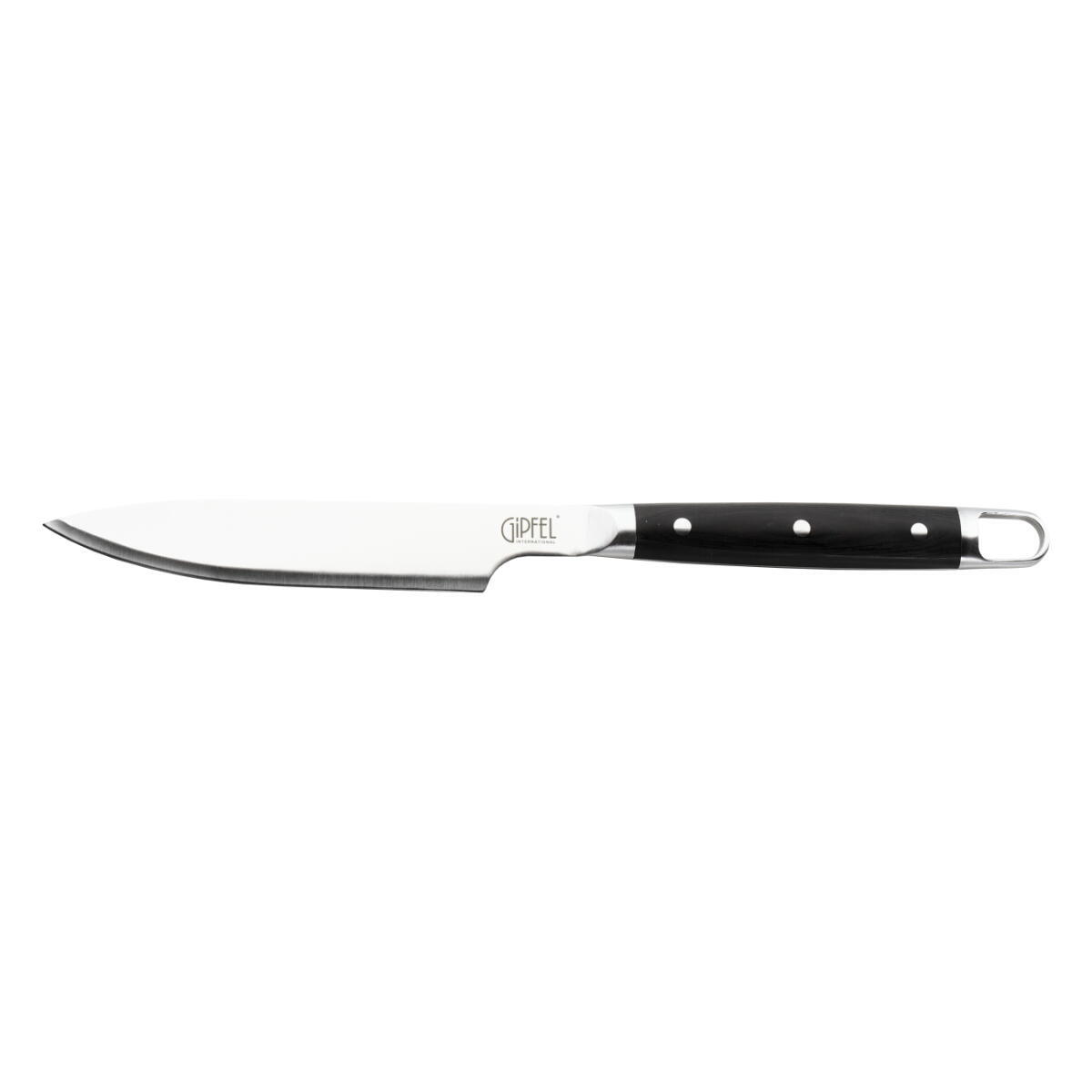 Нож для мяса GIPFEL MODENA 51262. Длина 41,5 см. Инструмент сделан из нержавеющей стали 2Cr14. Толщина 1,8 мм. Ручка выполнена из древеснослоистого пластика. На ручке имеется петля для подвешивания.