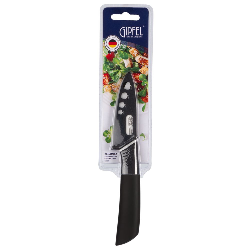Нож для овощей Gipfel 8463. Нож кухонный с керамическим лезвием длиной 7,5 см. Керамическое лезвие отличается превосходным сочетанием экологичности, остроты, гибкости и прочности. Бакелитовая ручка эргономична и не скользит в руке.
