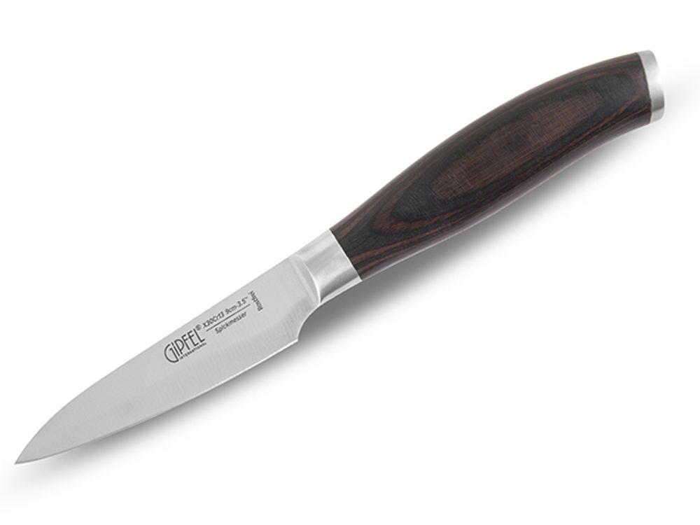 Нож для чистки овощей Gipfel ACCORD 9900. Длина лезвия 9 см. Материал лезвия: сталь X30CrMoV13. Материал ручки: сталь, древеснослоистый пластик. Толщина лезвия 2,0мм.