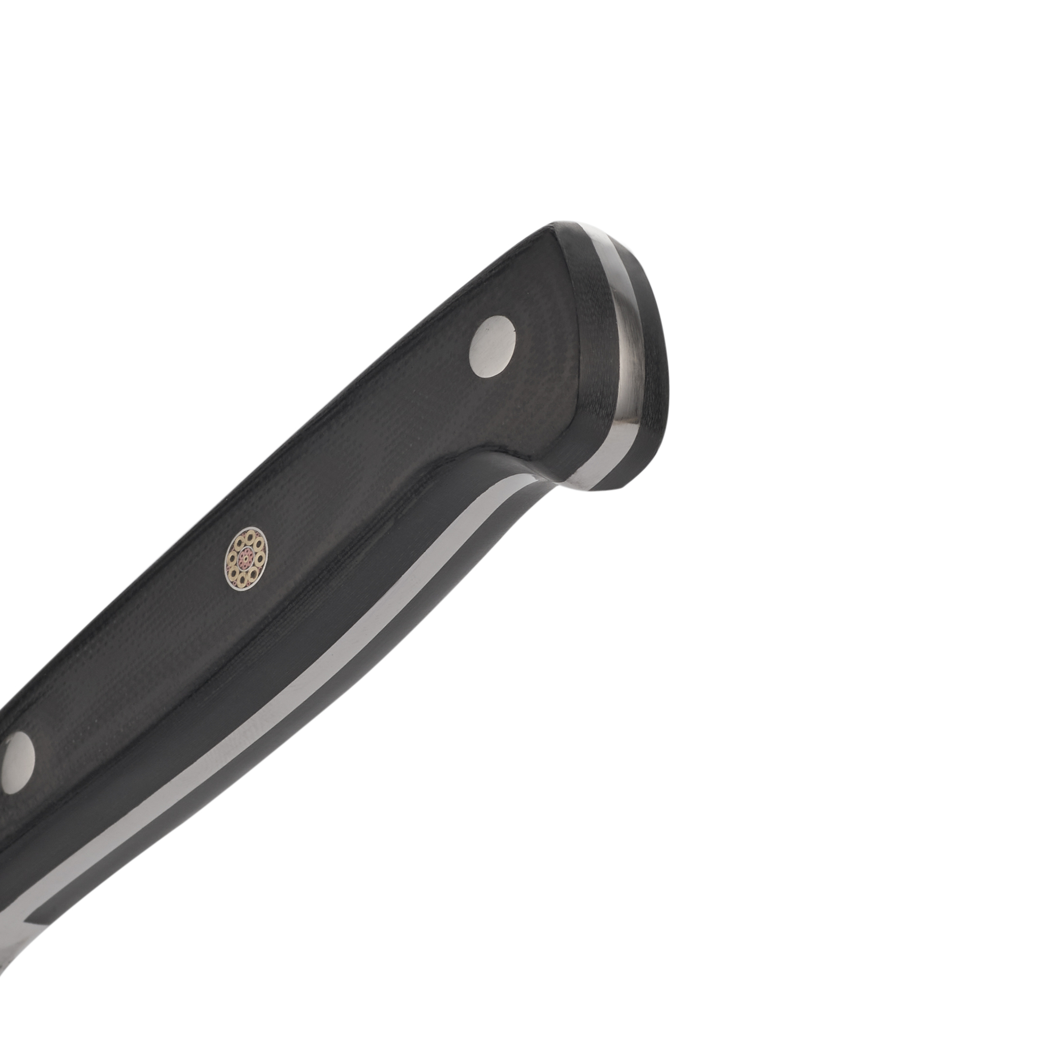 Нож для томатов GIPFEL NEW PROFESSIONAL 8660 13см. Материал лезвия: сталь X50CrMoV15. Материал ручки: стеклотекстолит G10. Толщина: 1,8мм. Цвет ручки: черный.