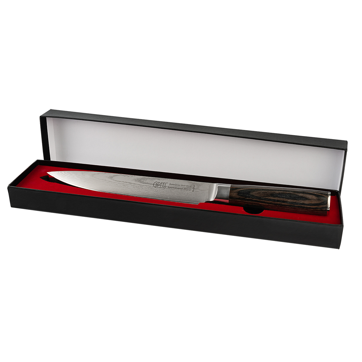 Нож разделочный Gipfel Akita 8419. Лезвие 20,3 см. Толщина лезвия 2,5мм. Материал лезвия дамасская сталь VG10. Ручка высокого класса Pakka.