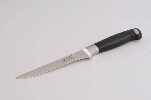 Серия ножей PROFESSIONAL LINE неспроста получила свое название – качество данных ножей делает их выбором профессиональных поваров. Ножи PROFESSIONAL LINE отличаются от других, прежде всего, материалом лезвия, которым является сталь марки 5CR15MOV. Она является отличным сочетанием остроты, гибкости и прочности, то есть именно тем, чем и должен выделяться идеальный кухонный нож. Добавьте к этому удобную бакелитовую рукоятку, которая не выскальзывает при резке, и вы получите настоящие профессиональные ножи, которыми теперь можно укомплектовать и вашу кухню! Длина данного разделочного ножа составляет 13 см.