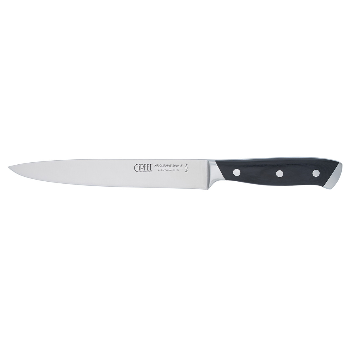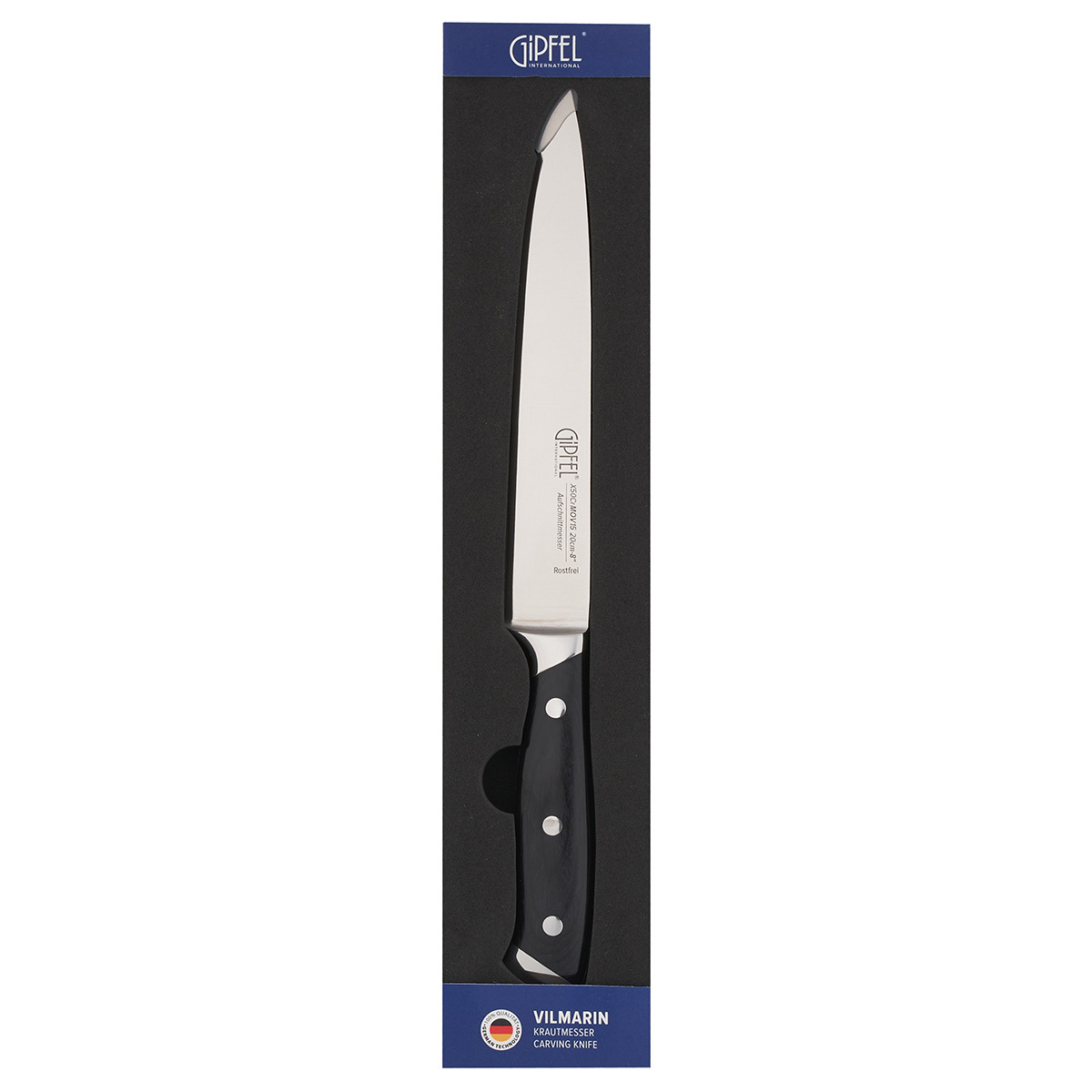 Нож разделочный Gipfel Vilmarin 6980 20 см. Материал лезвия: сталь X50CrMoV15. Материал ручки: сталь, древеснослоистый пластик. Толщина: 2,5 мм.