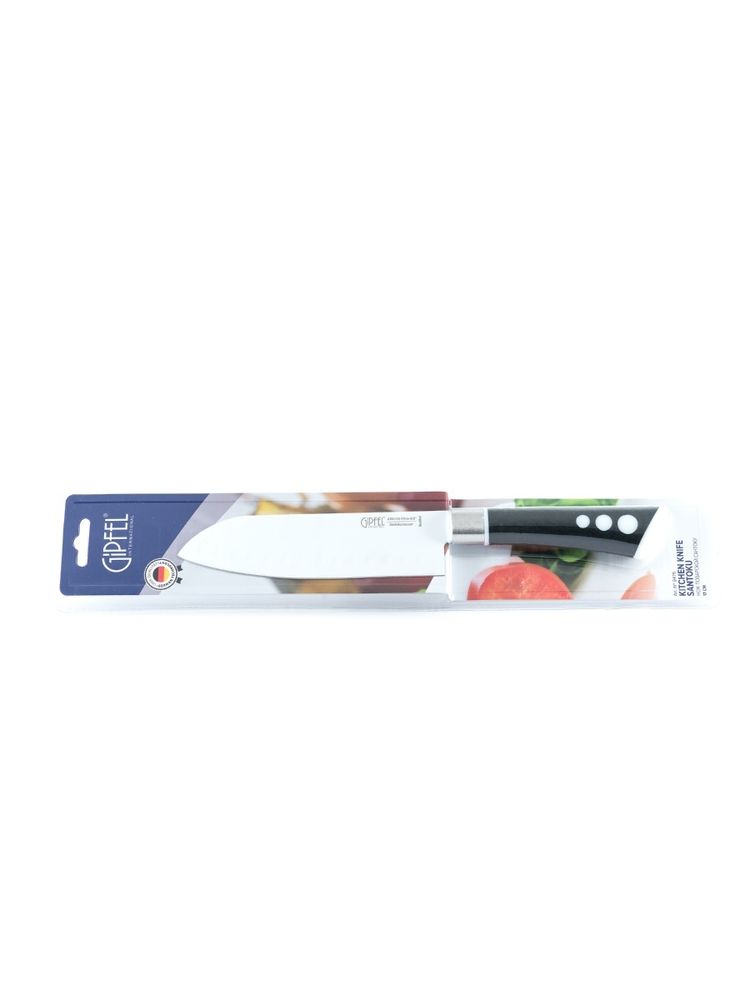 8476 GIPFEL Нож поварской сантоку 17см. Материал лезвия: нерж. сталь 3CR13 с антиприлипающим покрытием. Материал ручки: пластик soft touch. Цвет лезвия: белый. Цвет ручки: черный