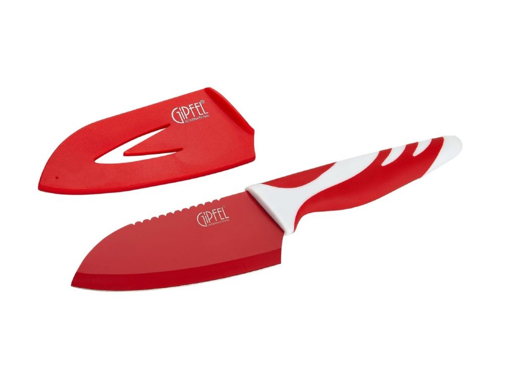 6774 GIPFEL Нож сантоку Rainbow 11 см в пластиковом чехле, с защитным покрытием, пластиковая ручка красная (нерж. сталь)