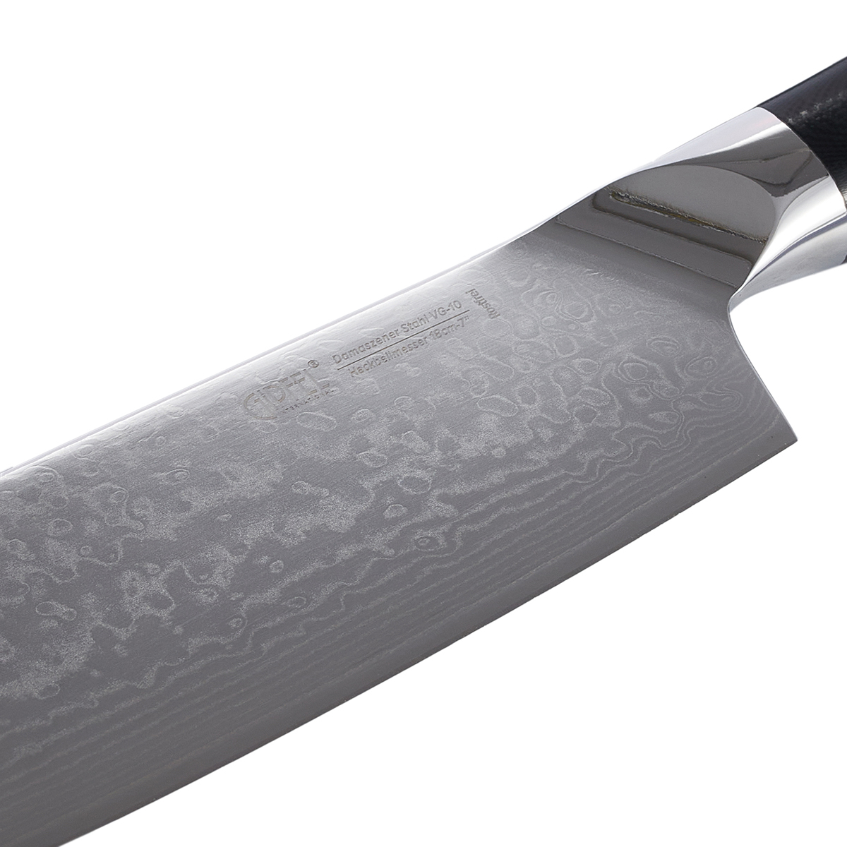 Нож - топорик Gipfel Damascus 52160 18 см. Толщина лезвия 2,5 мм. Материал: 67-слойная японская дамасская нержавеющая сталь премиум класса VG-10.
