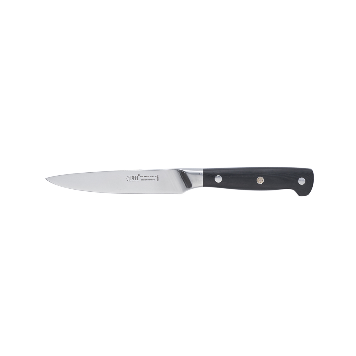 Нож универсальный GIPFEL NEW PROFESSIONAL 8656 12см. Материал лезвия: сталь X50CrMoV15. Материал ручки: стеклотекстолит G10. Толщина: 1,8мм. Цвет ручки: черный.
