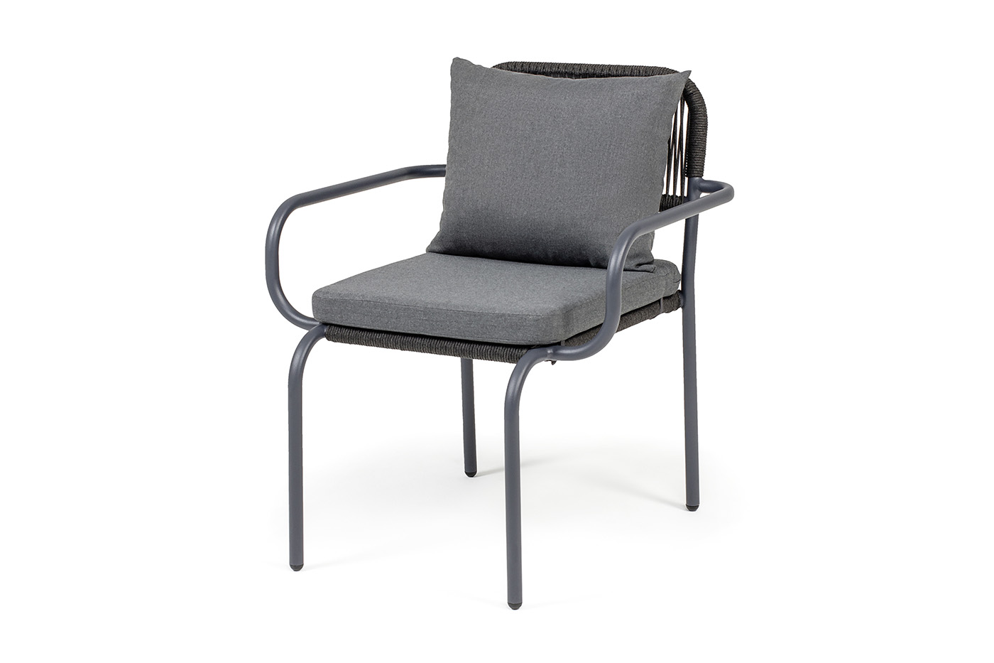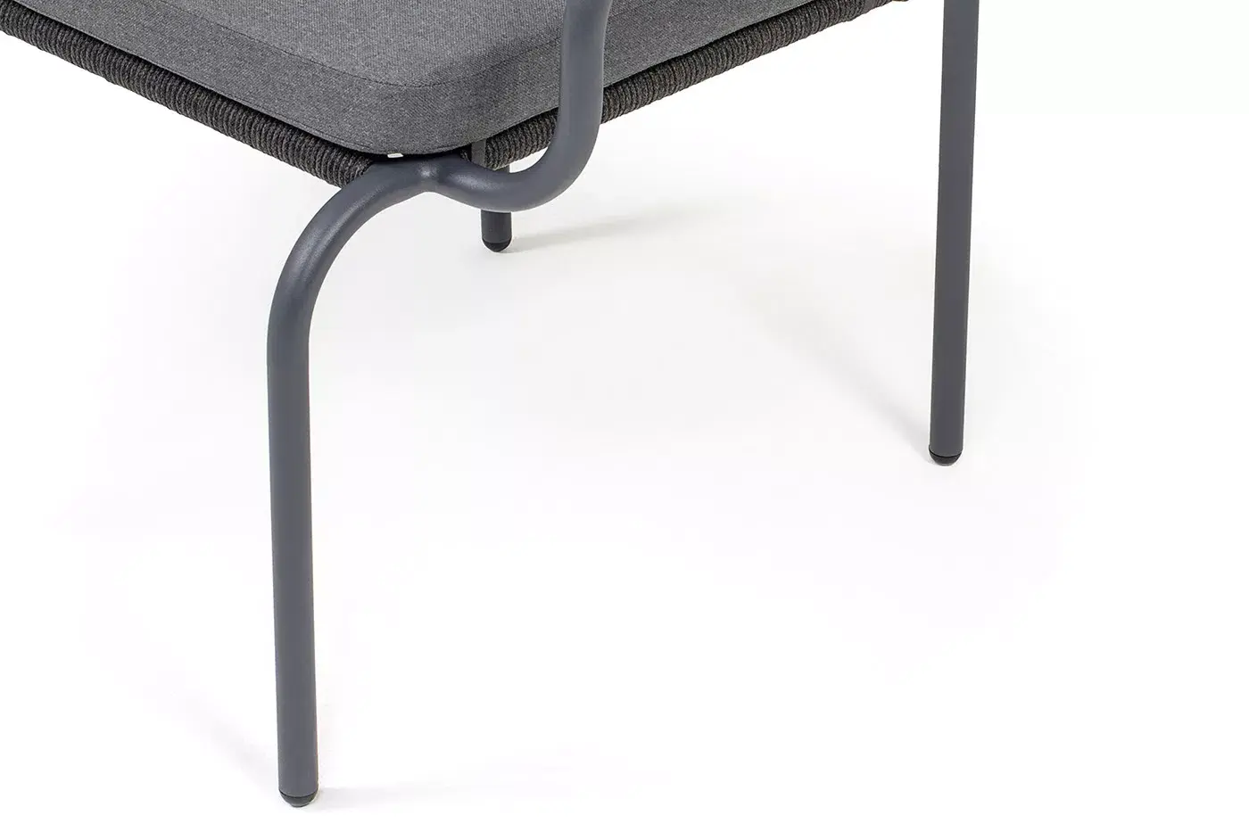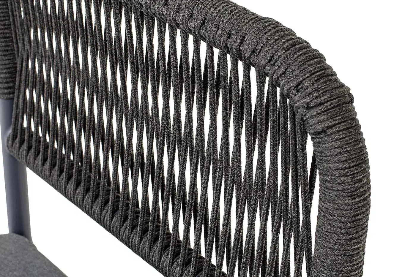 Выполнен из алюминиевого каркаса темно-серого (RAL7024) цвета. Оплетка - современный материал «роуп», которым каркас оплетался вручную.