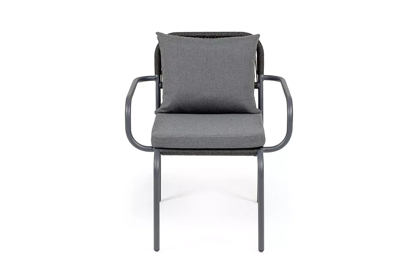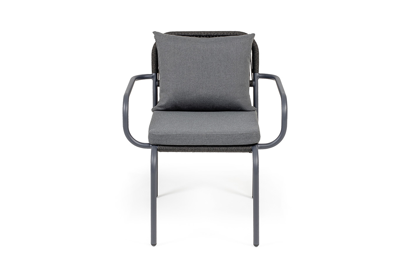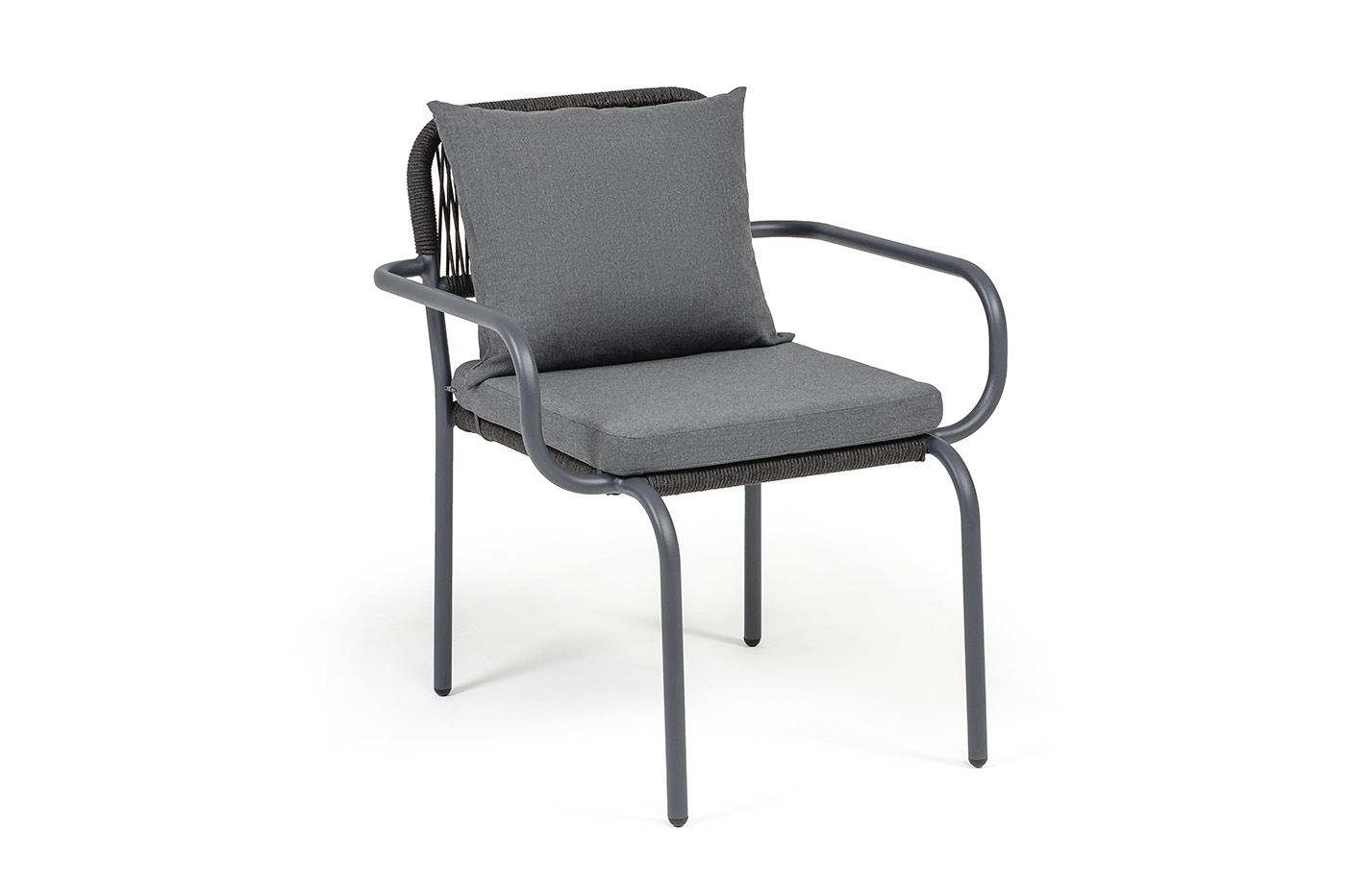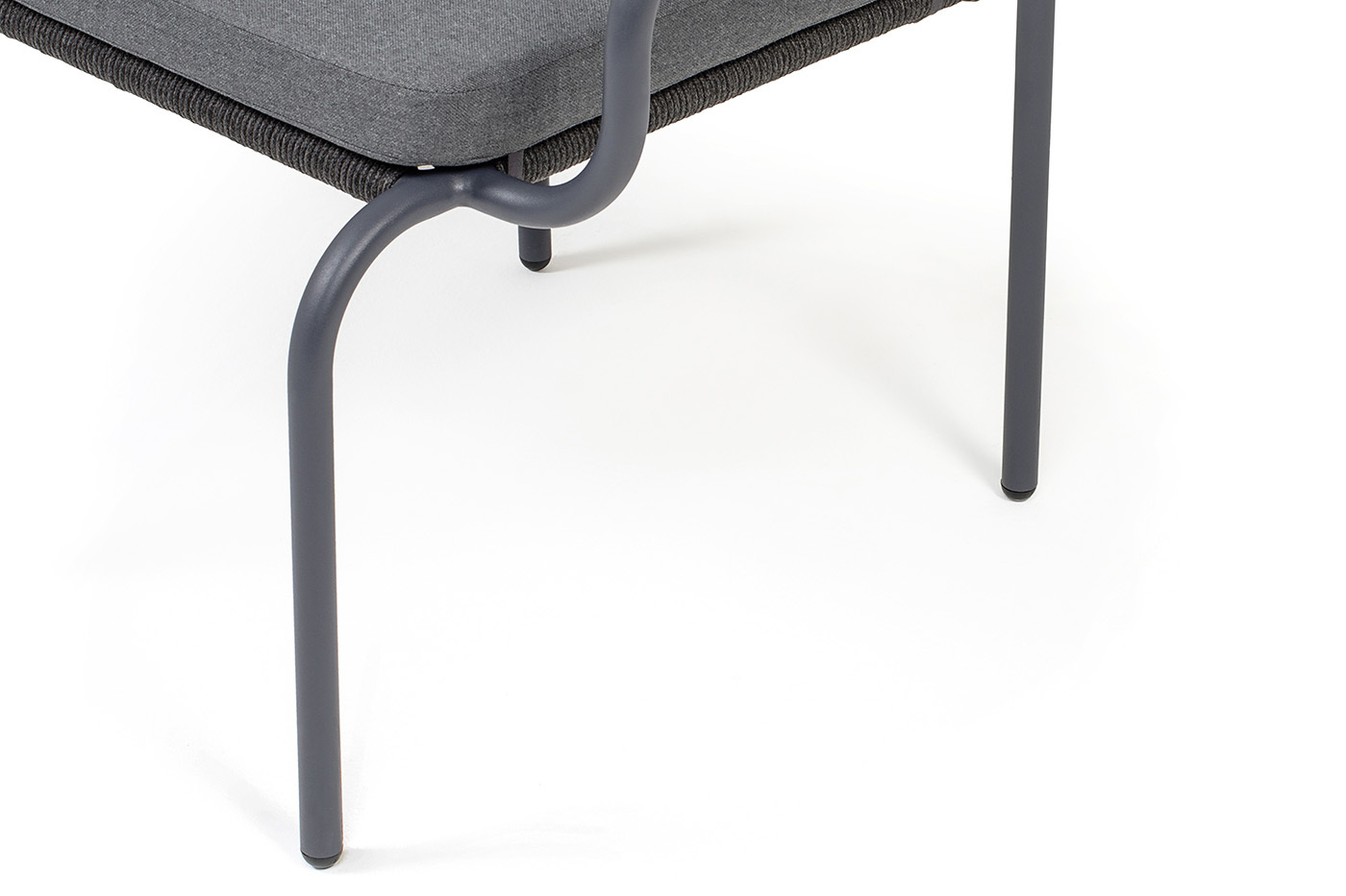 Выполнен из алюминиевого каркаса темно-серого (RAL7024) цвета. Оплетка - современный материал «роуп», которым каркас оплетался вручную.