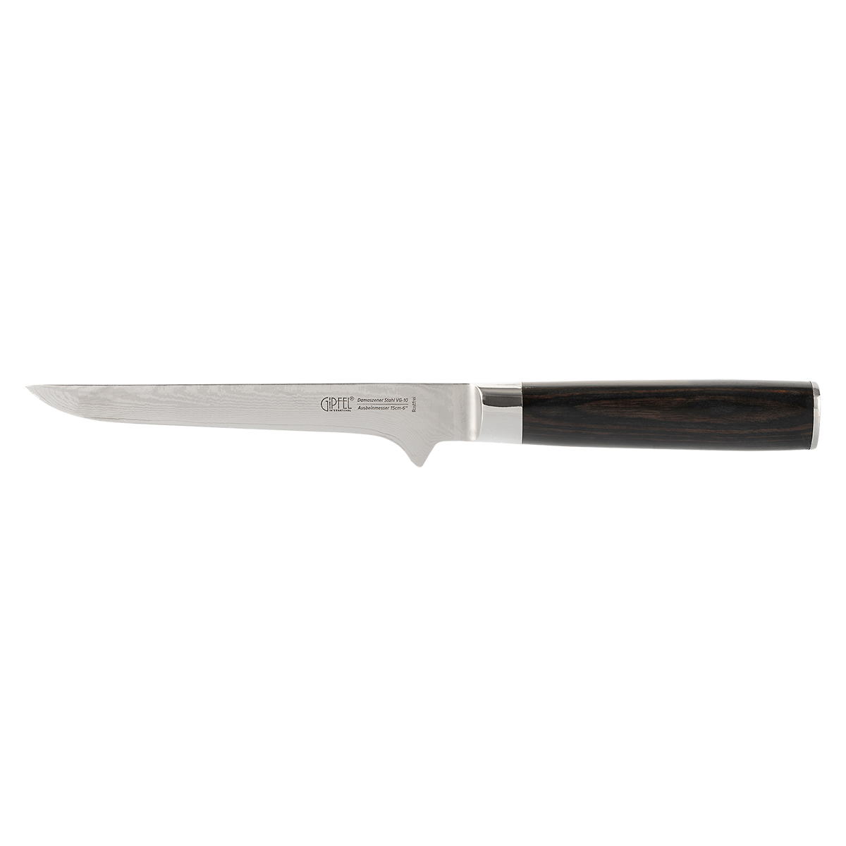 Нож обвалочный GIPFEL AKITA 8422. Размер лезвия 15,2 см. Толщина лезвия 2,5 мм. Материал дамасская сталь VG10. Ручка: высокого класса Pakka.