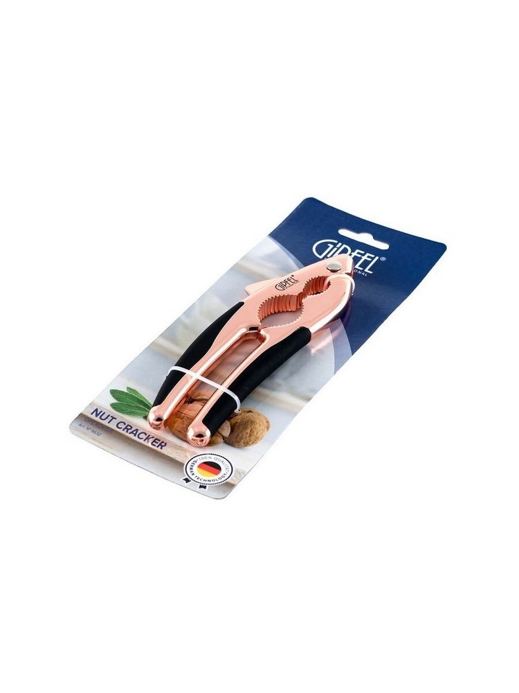 Орехокол Gipfel 9632. Чтобы отделить ядра от скорлупы, потребуется орехокол, с помощью которого добраться до содержимого скорлупки сможет даже ребенок. Инструмент оснащен комфортными ручками, легко помещающимися в руках. Фактурная поверхность поможет избежать скольжения при использовании. Материал, из которого выполнен орехокол — сплав цинка. Окрашенный в цвет розового золота, в сочетании с черными ручками и контрастной гравировкой логотипа бренда на поверхности смотрится ярко и стильно. Рычаг, с помощью которого вскрывается скорлупа, рассчитан на орехи двух диаметров: больших и маленьких.