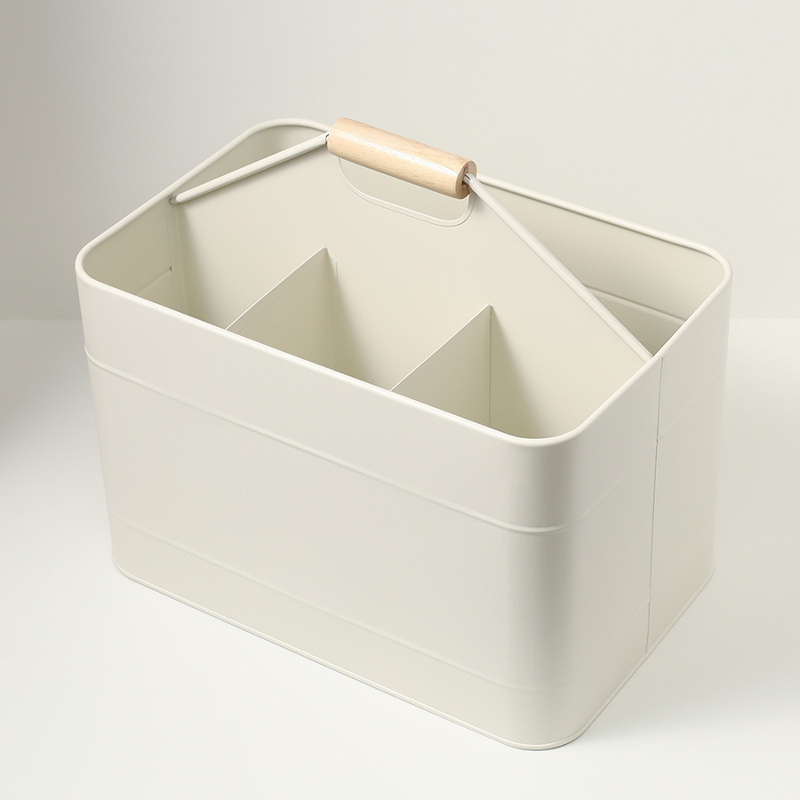 Материалы: углеродистая сталь, бамбук. Размеры: 32,3х21х29,5 см. Большой отсек: 31,7х9,7х29,5 см. Малые отсеки: 10,6х10,7х29,5 см. Цвет: молочный.