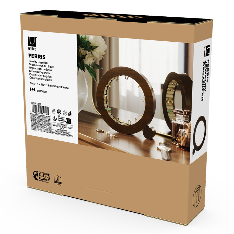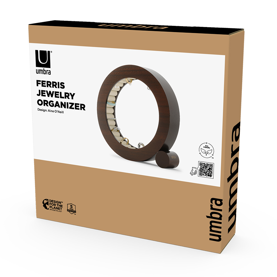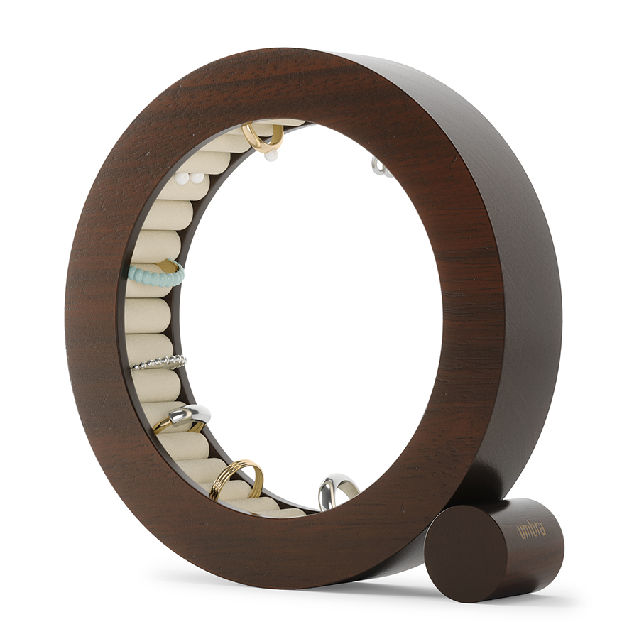 Органайзер для украшений Ferris понравится ценителям предметов из натуральных материалов и необычного декора. Выполненный в форме кольца из каучукового дерева, он будет оригинально смотреться на тумбе или туалетном столике. Внутренняя поверхность органайзера имеет бархатное покрытие, которое обеспечивает удобное и безопасное хранение украшений.