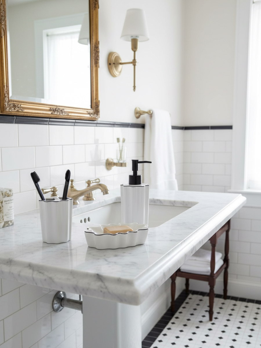 - Каменная керамика, из которой изготовлен органайзер, не тускнеет со временем, устойчива к царапинам, не впитывает загрязнения, легко моется.