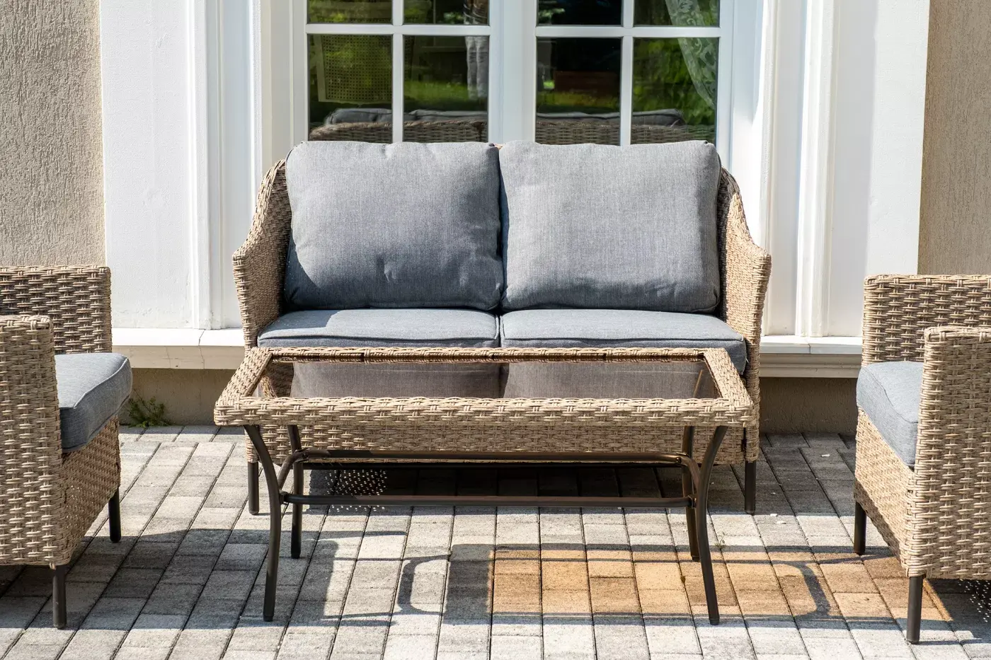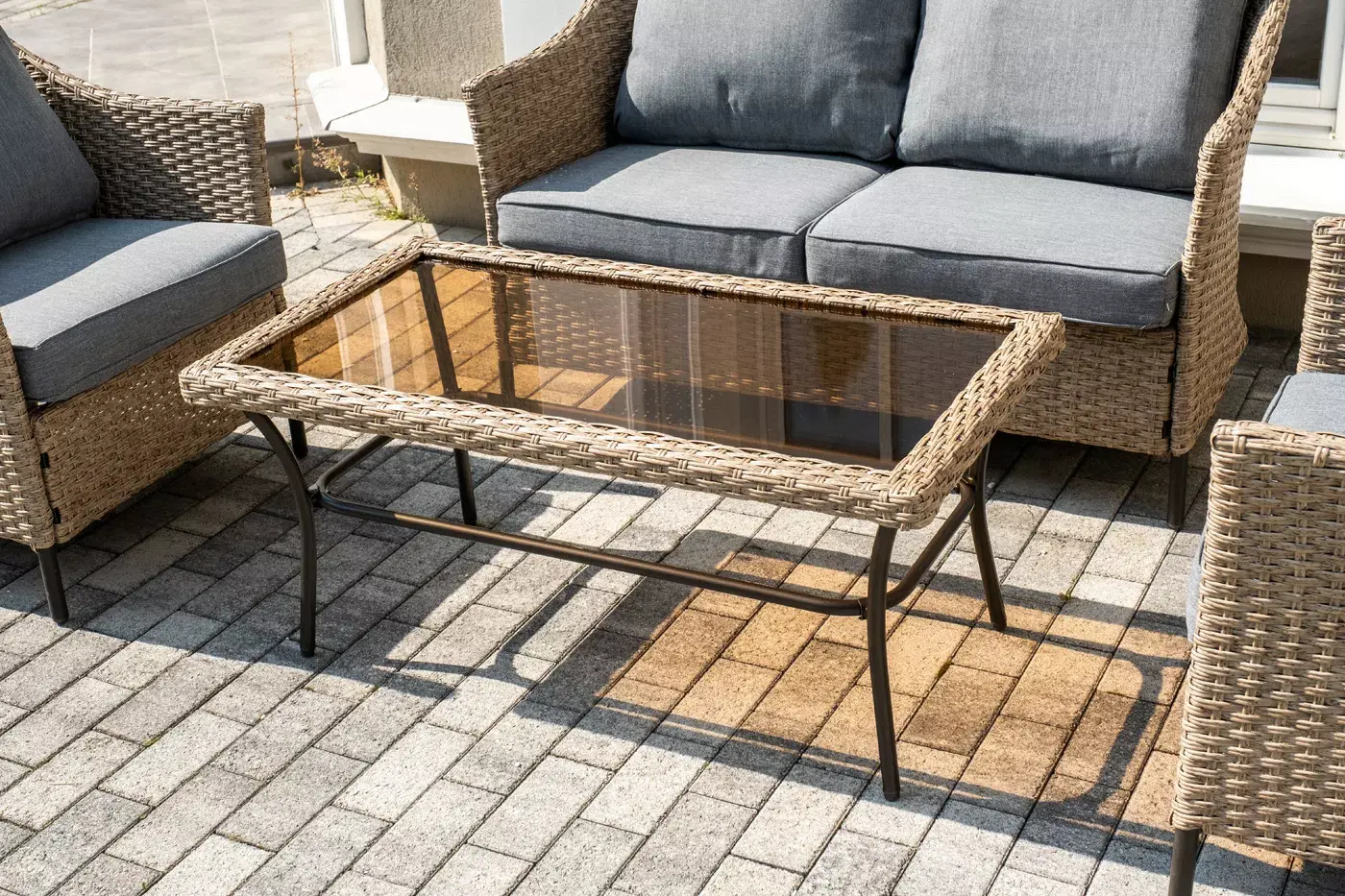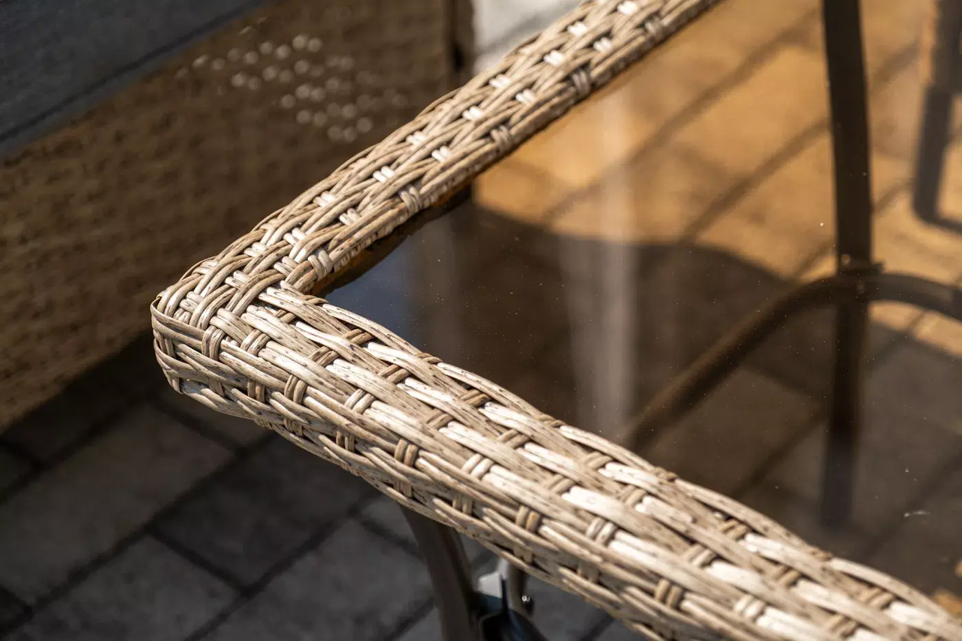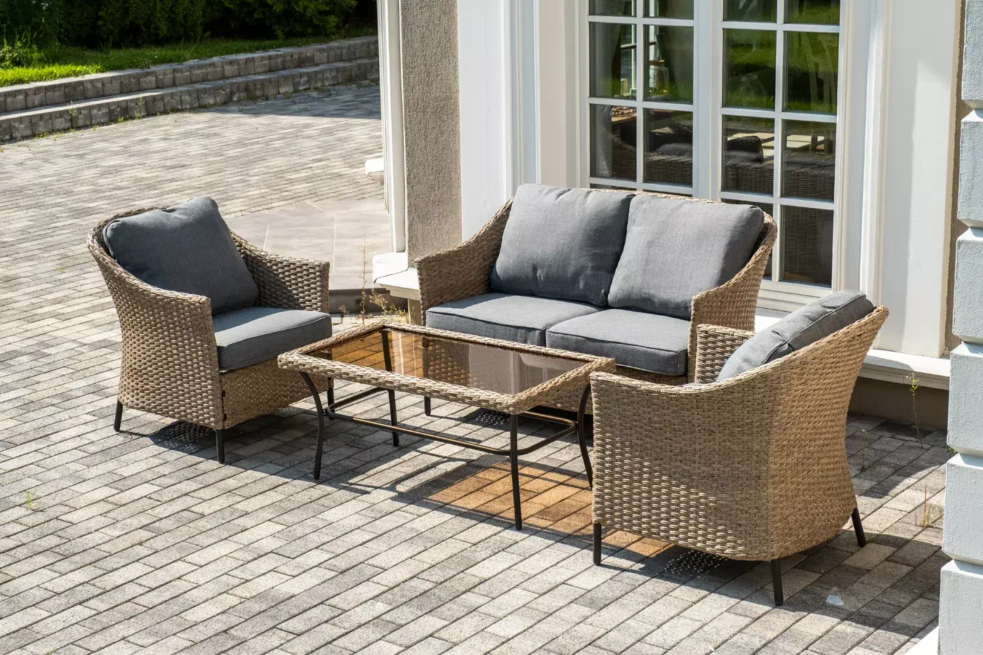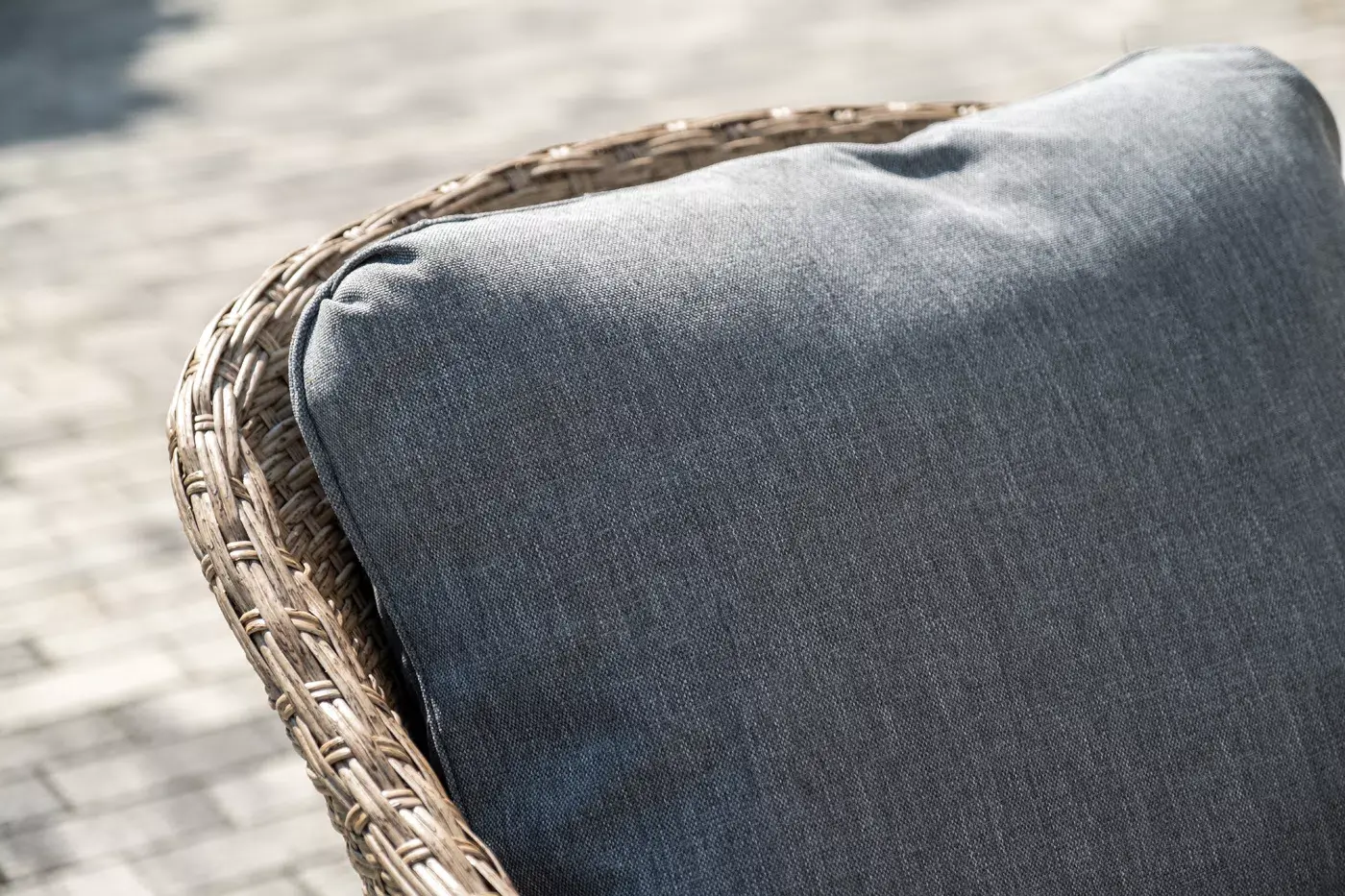 Лаунж-зона «Овьедо» подходит для размещения четырех персон. За прочность конструкции отвечает стальной каркас.