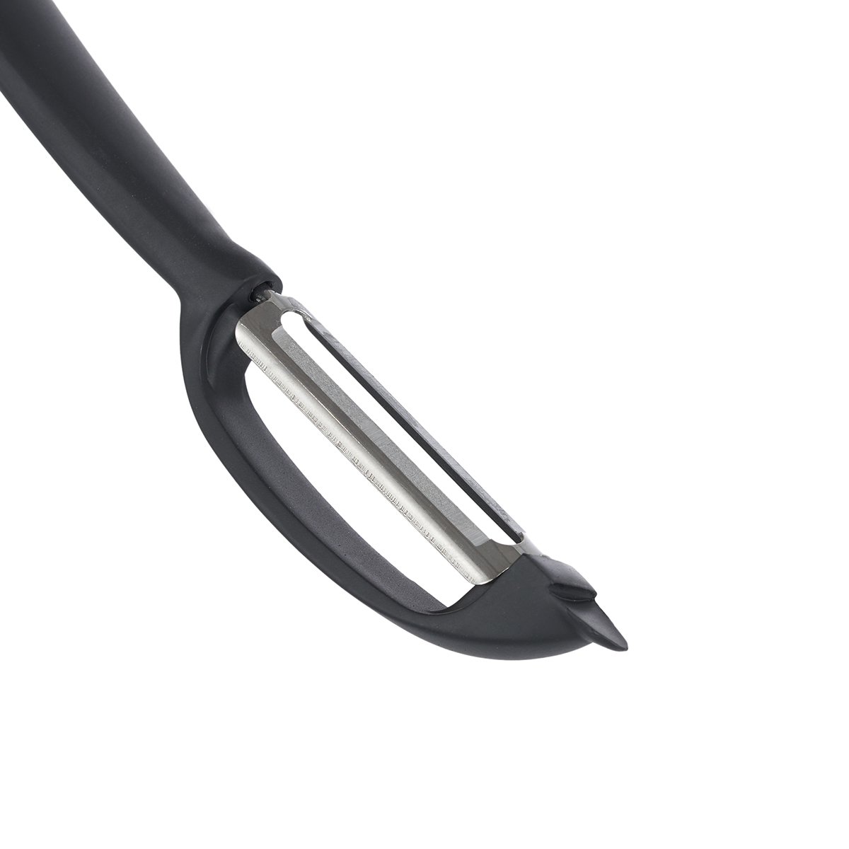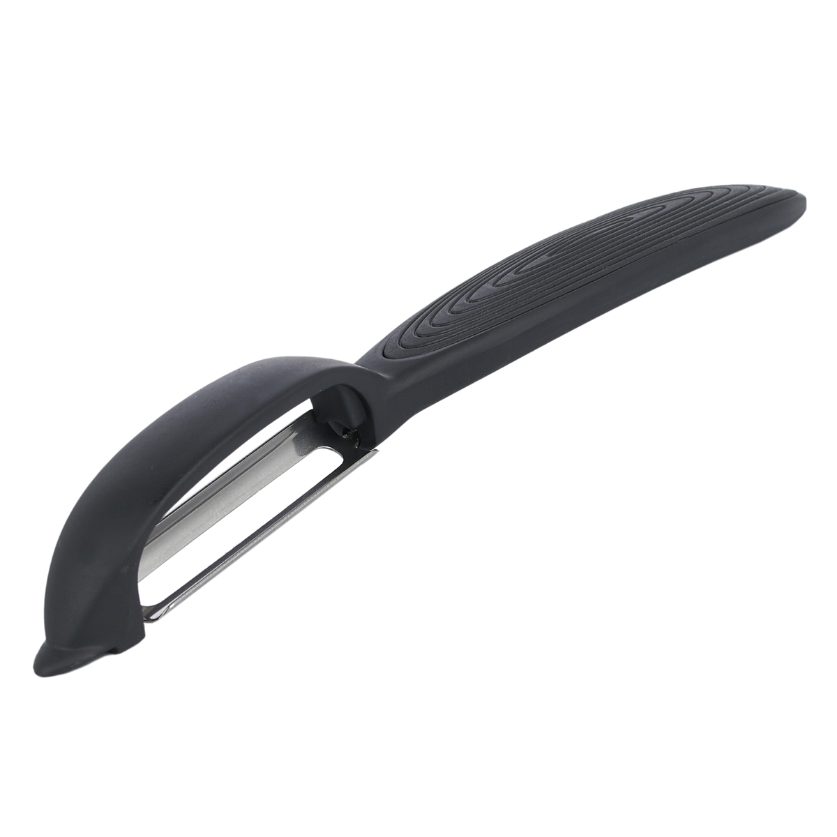 Рабочая часть изготовлена из качественной нержавеющей стали, материала прочного и долговечного. При правильной эксплуатации лезвие остается острым длительное время. Угол режущей поверхности позволяет срезать ультратонкий слой кожуры.