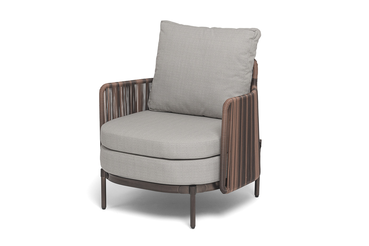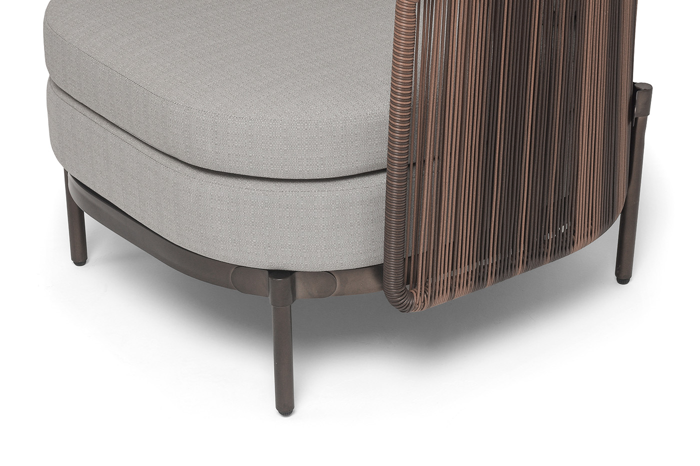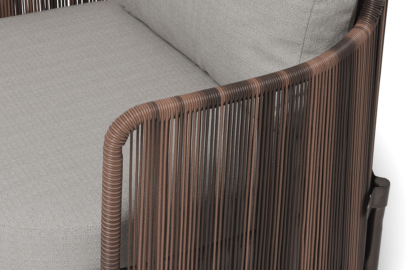 Кресло из искусственного ротанга «Паэлья» оснащено каркасом из прочного алюминия, ручное плетение является основным декоративным элементом мебели. Оно выполнено из искусственного ротанга коричневого цвета.