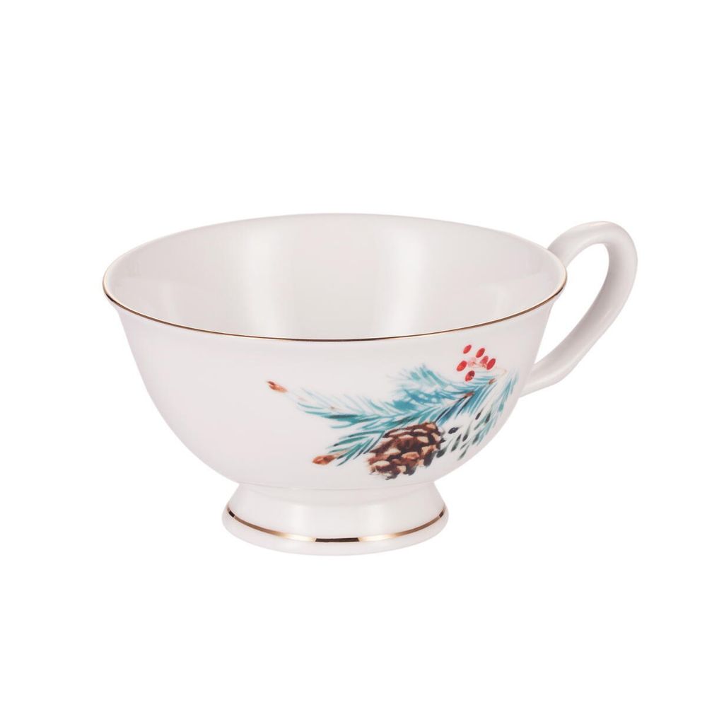 Пара чайная Gipfel CHRISTMAS FORREST 41244. Блюдце и чашка с изображением еловой ветки станут ярким элементом сервировки к зимним праздникам. Объем чашки 180мл. Набор сделан из костяного фарфора белого цвета.
