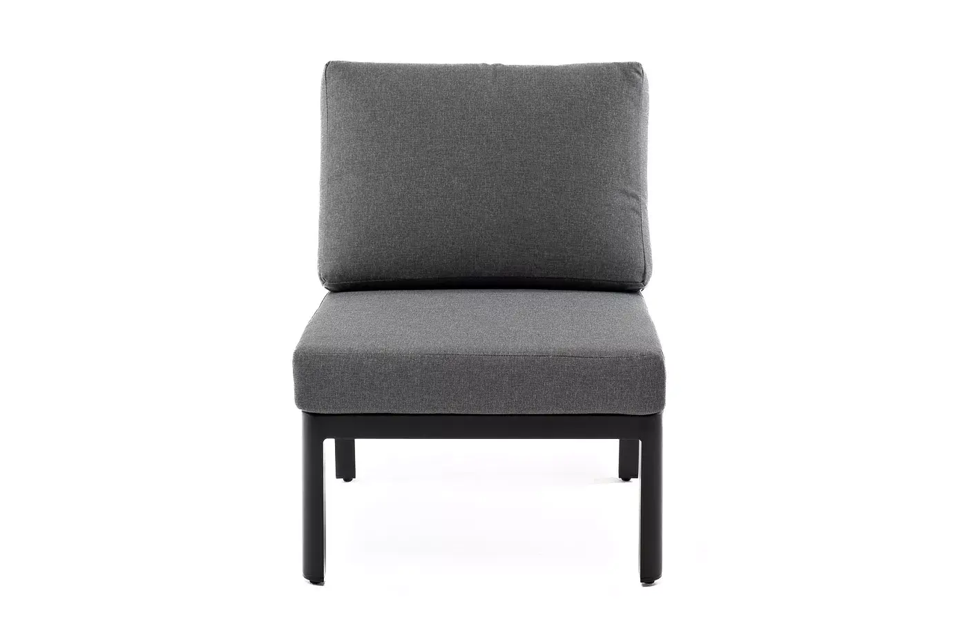 «Париж» модуль диванный центральный, алюминиевый каркас темно-серого цвета. В комплекте с подушками серого цвета со съёмными чехлами. Размер: 600×780×700 мм.
