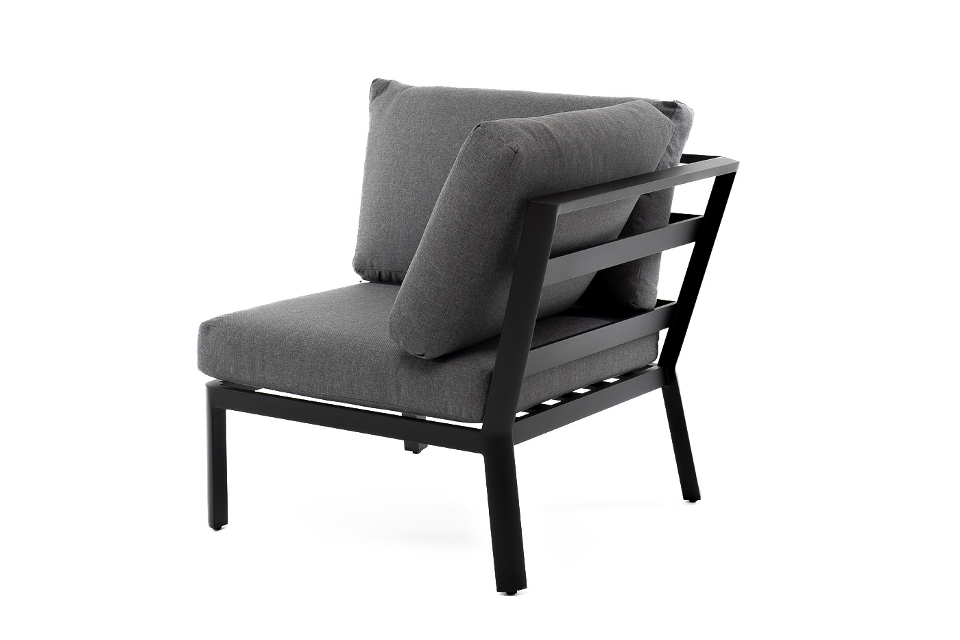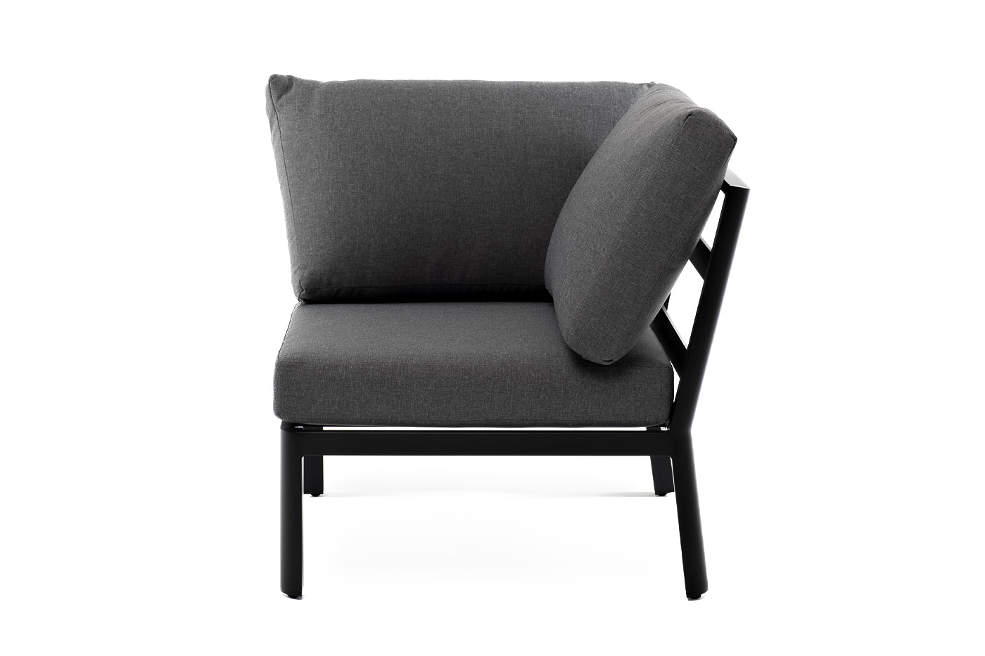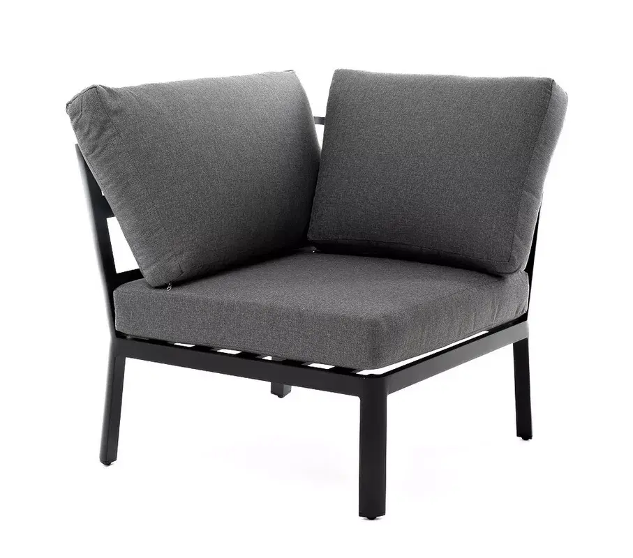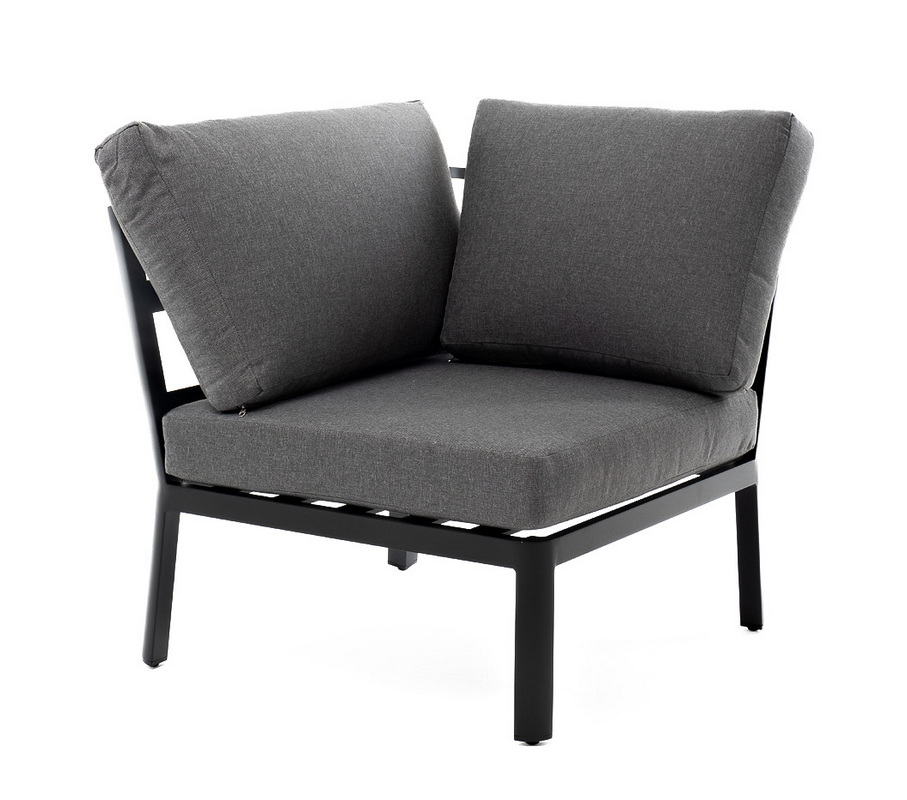 «Париж» модуль диванный угловой, алюминиевый каркас темно-серого цвета. В комплекте с подушками серого цвета со съёмными чехлами.