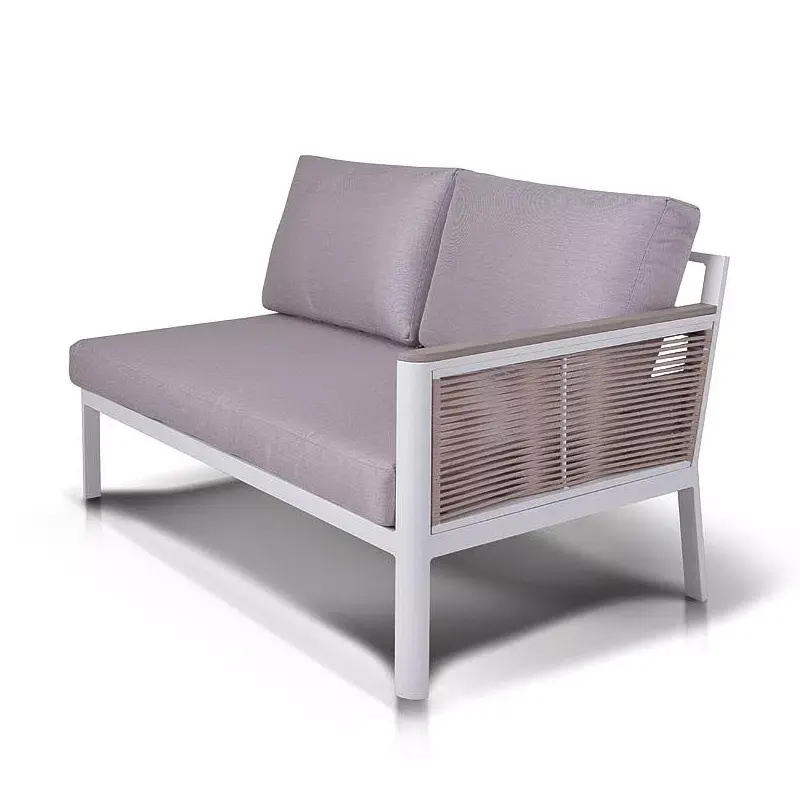 «Париж» модуль диванный левый изготовлен из алюминиевого каркаса белого цвета. Боковины оплетены роупом - эластичными лентами из полиэфирных волокон, цвет бежевый.