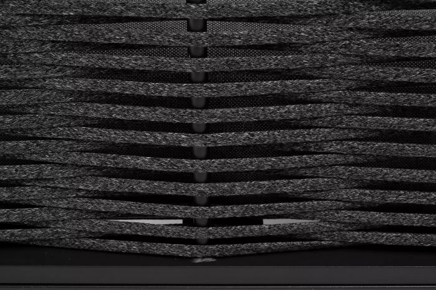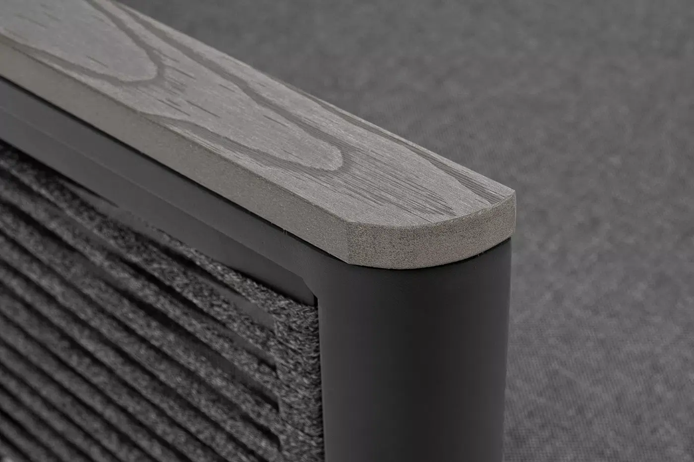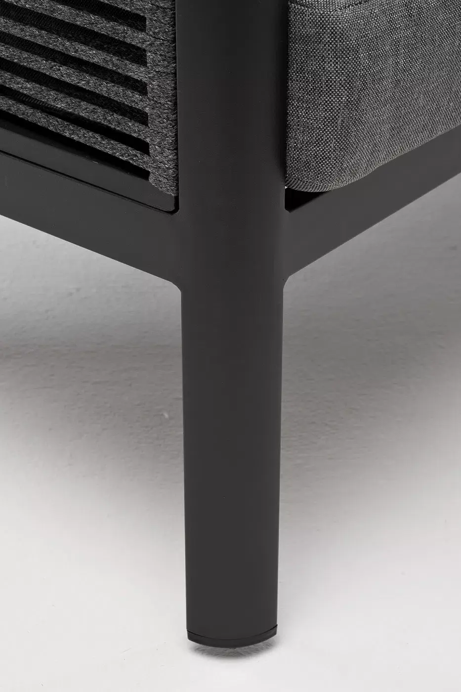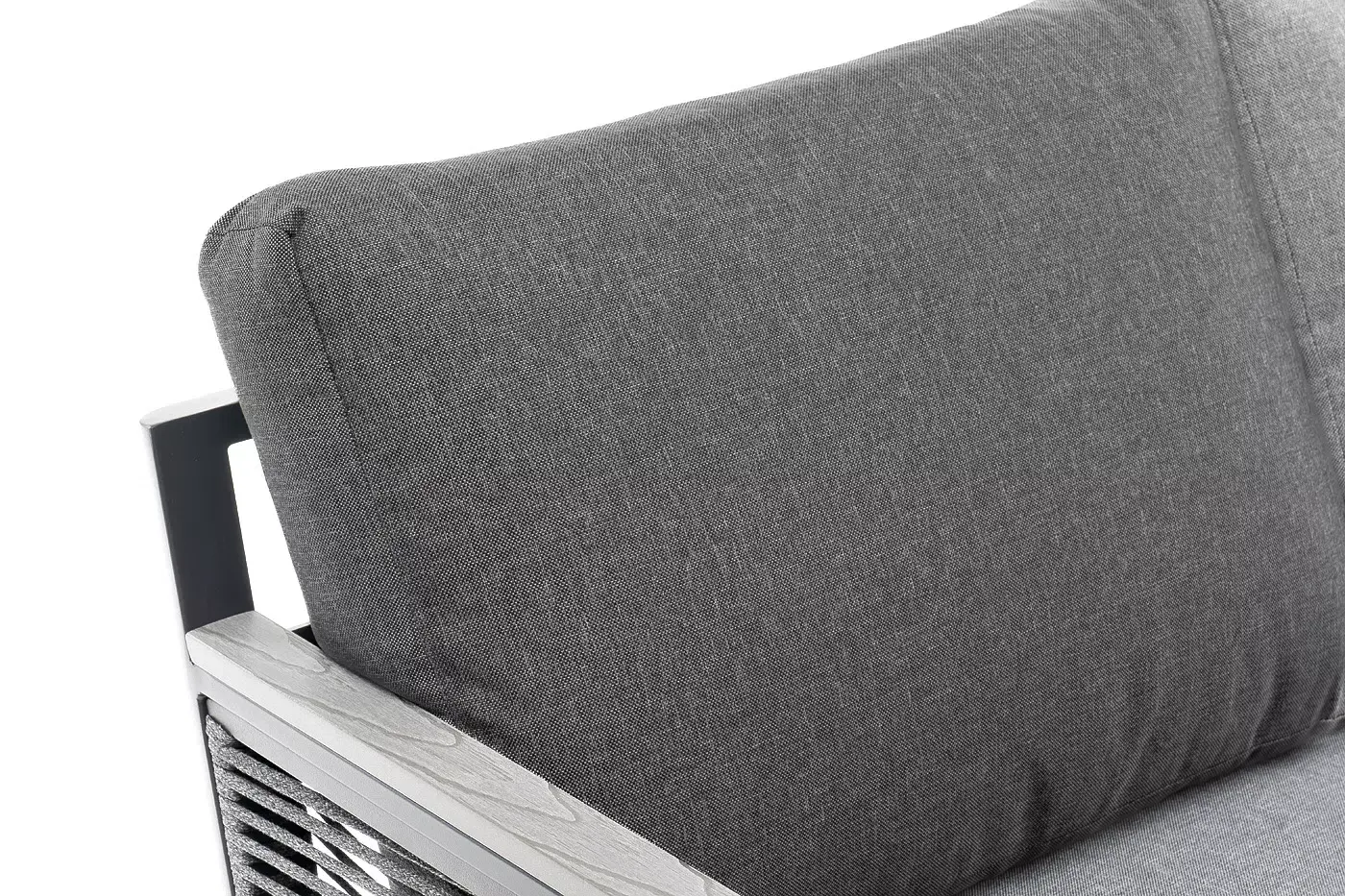«Париж» модуль диванный правый изготовлен из алюминиевого каркаса темно-серого цвета. Боковины оплетены роупом - эластичными лентами из полиэфирных волокон, цвет серый.