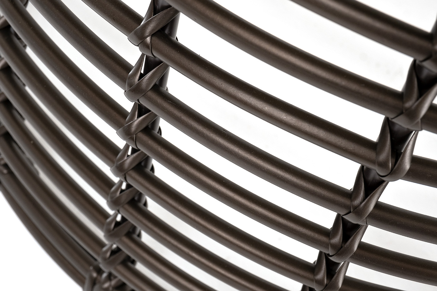 Каркас столика изготовлен из алюминия, вручную оплетенного круглым искусственным ротангом.