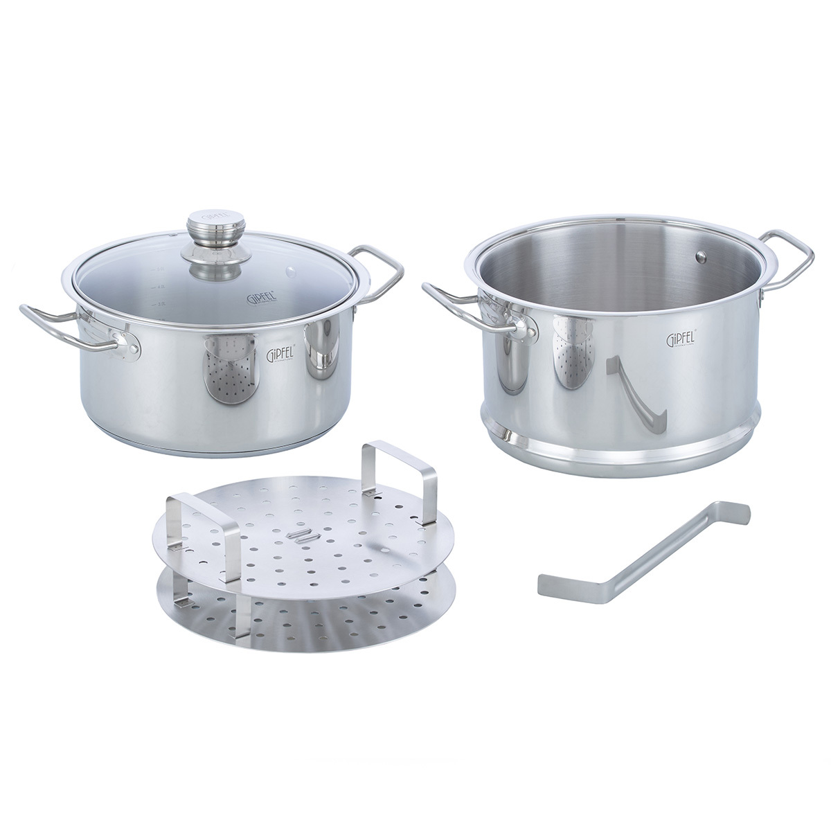 Пароварка трехъярусная Gipfel MESSINA 1307 6.0 л. Материал: нержавеющая сталь 18/10. Материал ручки: нержавеющая сталь 201. Индукционное дно.