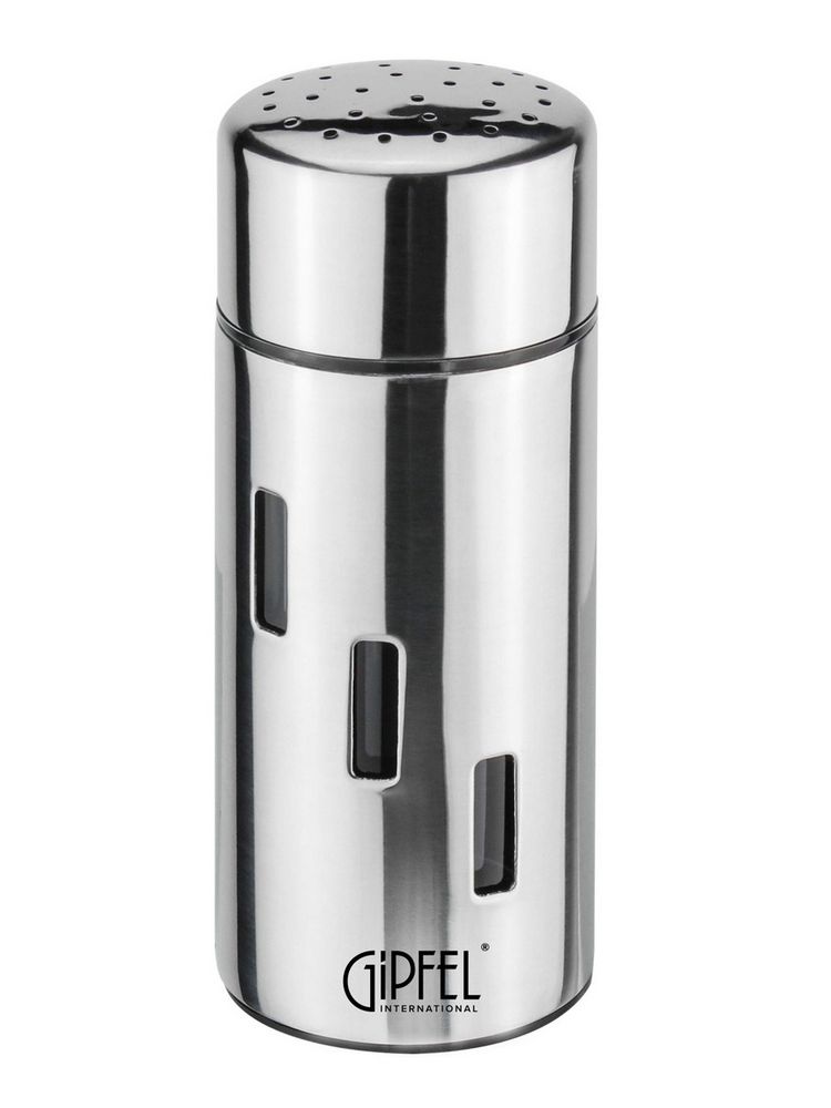 Перечница GIPFEL 6292. Перечница имеет цилиндрическую форму и зеркальную полировку. Размер 13х5см. Сделана из нержавеющей стали 18/10 с вставками из пластика.