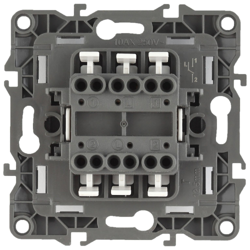 Выключатель перекрёстный/промежуточный, двойной серии Эра 12 скрытой установки механизм, цвет перламутр 12-1112-15. Номинальные хар-ки 10А 250В. Сделан из поликарбоната, оснащено автоматическими клеммами для быстрой и надёжной фиксации жил кабеля в механизме. Парные клеммы обеспечивают соединение шлейфом. Монтаж в подрозетник производится на винты. Рамки приобретаются отдельно. Рамки Эра 12: 1 пост 12-5001-хх, 2 поста 12-5002-хх, 3 поста 12-5003-хх, 4 поста 12-5004-хх, 5 постов 12-5005-хх. Рамки Эра 12 Сатин: 1 пост 12-5101-хх, 2 поста 12-5102-хх, 3 поста 12-5103-хх, 4 поста 12-5104-хх, 5 постов - 12-5105-хх (хх - код цвета: 01-белый, 02-слоновая кость, 03-алюминий, 04-шампань, 05-антрацит, 06-чёрный, 07-ольха(белёный дуб-сатин), 08-вишня, 09-дуб, 10-венге, 11-сосна, 21-жёлтый, 22-оранжевый, 23-красный, 24-охра, 25-бордо, 26-лайм, 27-зелёный, 28-голубой, 29-синий).