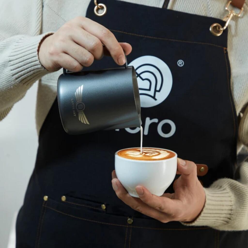 ЭРГОНОМИЧНАЯ РУЧКА ДЛЯ РАВНОМЕРНОГО И КОНТРОЛИРУЕМОГО НАЛИВАНИЯ. Опущенная эргономичная ручка обеспечивает удобный захват, уменьшая дрожание руки и делая процесс наливания более плавным и стабильным. Такая конструкция улучшает контроль, позволяя каждый раз получать чёткие, аккуратные узоры и стабильное латте-арт. КОНСТРУКЦИЯ С ДВУМЯ НОСИКАМИ ДЛЯ РОВНОГО И СТАБИЛЬНОГО ЛАТТЕ-АРТА. Большой V-образный носик обеспечивает идеальный поток молока для безупречного латте-арта, позволяя плавно наливать напиток. V-образный носик меньшего размера точно регулирует скорость потока, позволяя с легкостью и точностью создавать сложные узоры.