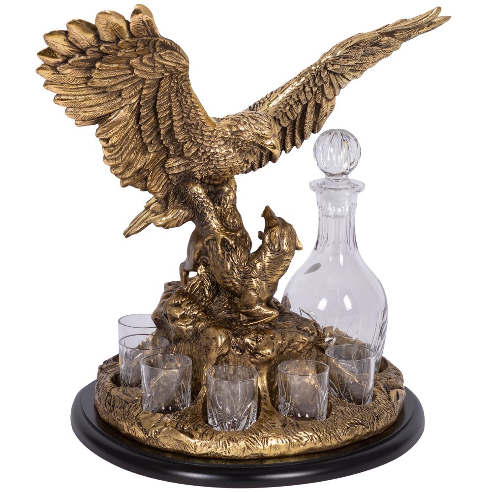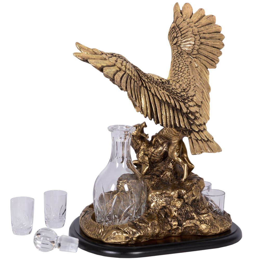 Статусный подарокПитейный набор «Поединок орла с шакалом» в качестве подарка будет служить аллегорическим пожеланием победы, успеха в жизни и в бизнесе. Великолепный сувенир для любого мужчины. Шикарный подарок руководителю любого ранга.