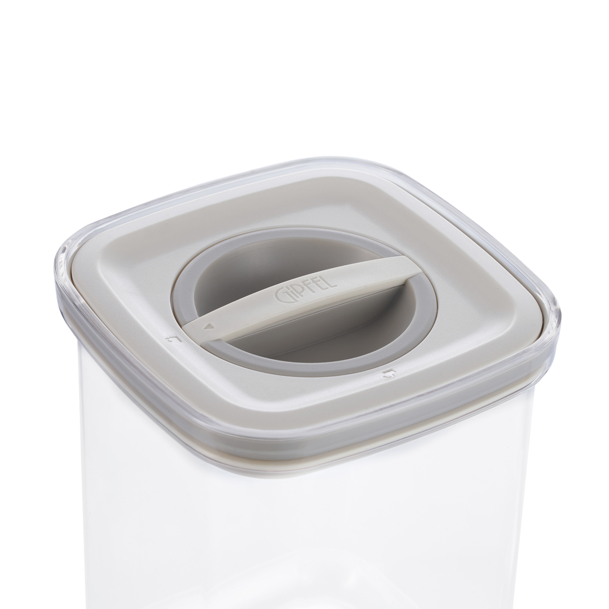 Пластиковый контейнер с герметичной крышкой Gipfel TWIST 50651 1 л. Контейнер имеет герметичную крышку, которая фиксируется в одно касание. Контейнер удобно использовать на кухне для хранения круп, мюсли, крекеров и других сыпучих продуктов – вакуумная крышка защитит от попадания посторонних запахов и влаги.