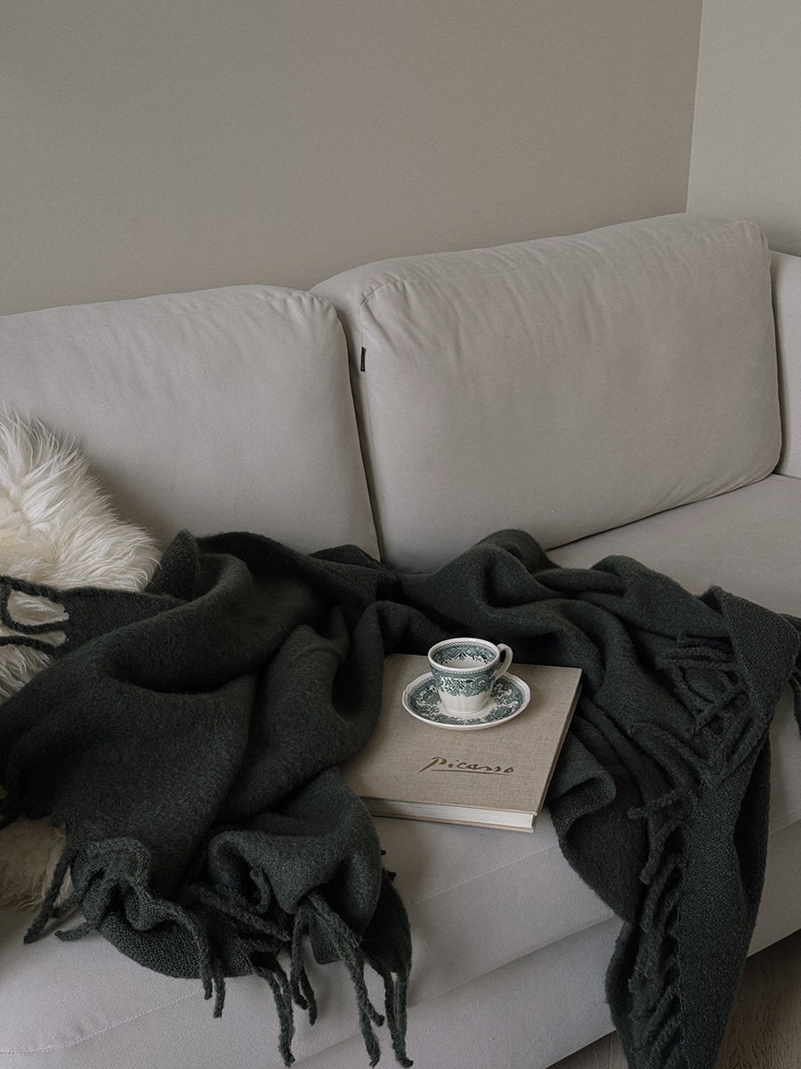 Мохеровый плед хвойно-зеленого цвета из коллекции Essential станет удачным дополнением любого интерьера, где ценится комфорт и внимание к деталям. Мягкое на ощупь полотно будет вашим верным спутником в прохладные вечера у камина или на пикнике на природе.