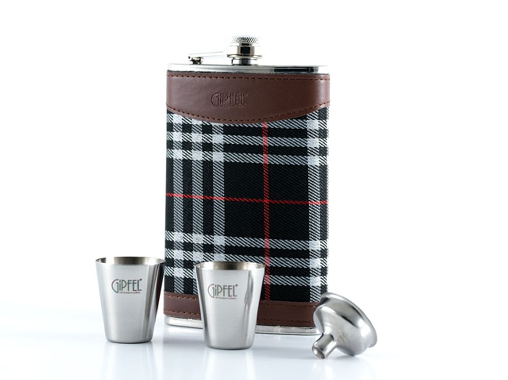 Набор фляга и стопки GIPFEL GRINGO 8291. В наборе фляга объемом 300 мл, 2 стопки и воронка для удобства наполнения фляги. Набор выполнен из нержавеющей стали 18/10 с отделкой из искусственной кожи. Набор упакован в коробку и прекрасно подойдет для подарка.