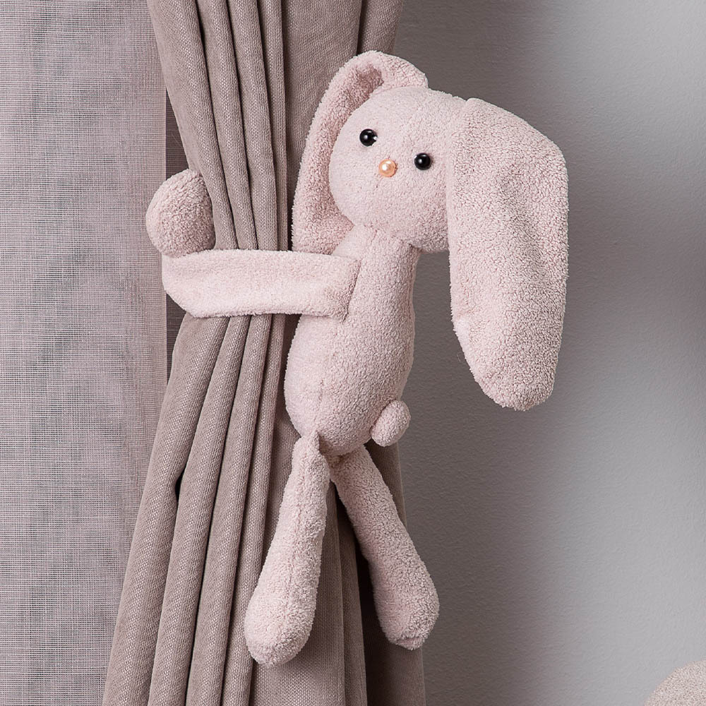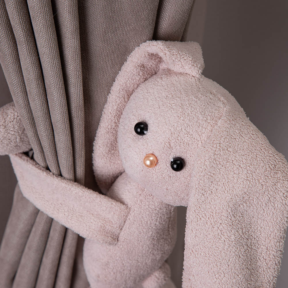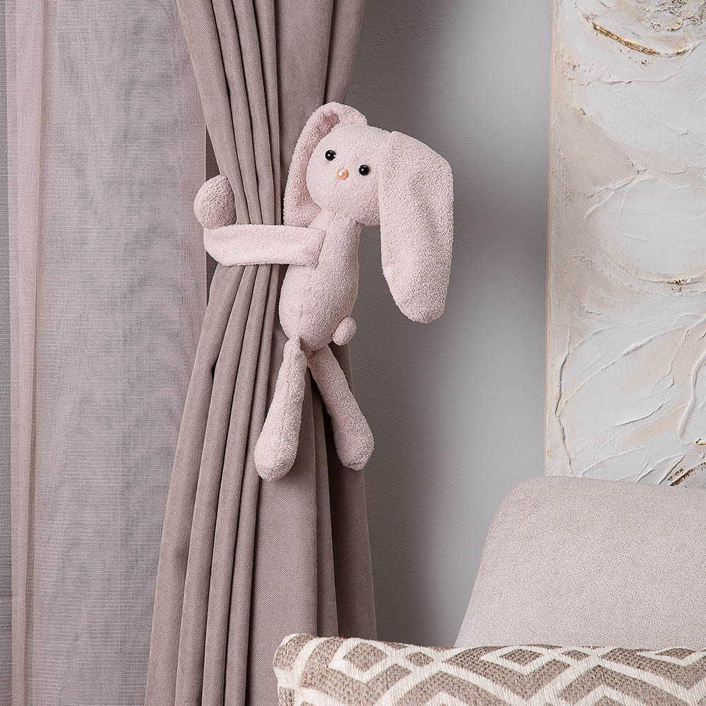✔ Завязывается на шторы✔ Бледно-розовый цвет — нежный акцент в интерьере✔ Форма зайчика — декоративно и стильно