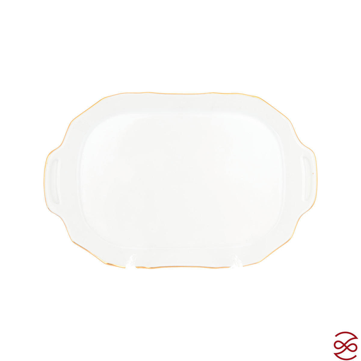 На подносе с удобными ручками можно поднести не только угощения к столу, но еще и хорошее настроение, и ощущение праздника. Этому способствует не только эстетика декора, но еще и особая подача на белоснежном полотне фарфора с золотой каймой.