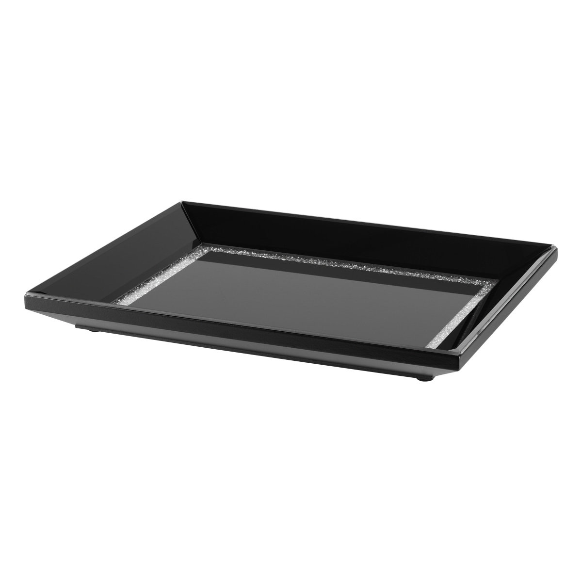 Поднос Gipfel Moonlight 42885. Размер 33x27x3 см. Изготовлен из МДФ и стекла. Поверхность глянцевая черная стеклянная с серебристым декором.