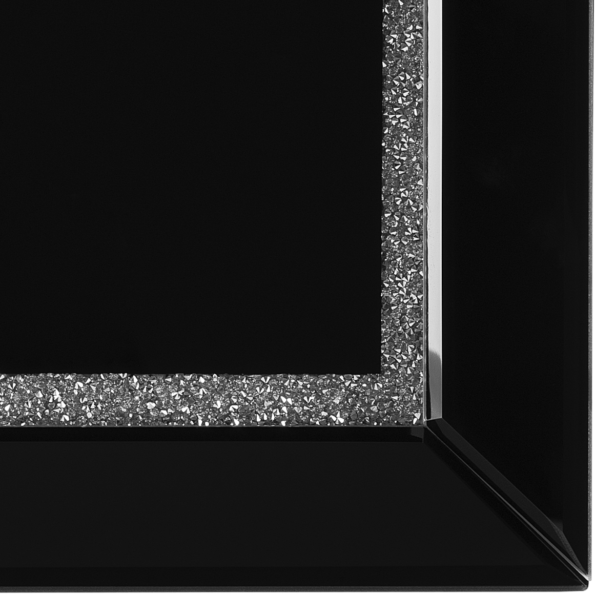 Поднос Gipfel Moonlight 42885. Размер 33x27x3 см. Изготовлен из МДФ и стекла. Глянцевая черная стеклянная поверхность подноса декорирована полосой сверкающих страз серебристого цвета, находящихся под стеклом. На дне расположены миниатюрные мягкие ножки, которые не царапают поверхность мебели.