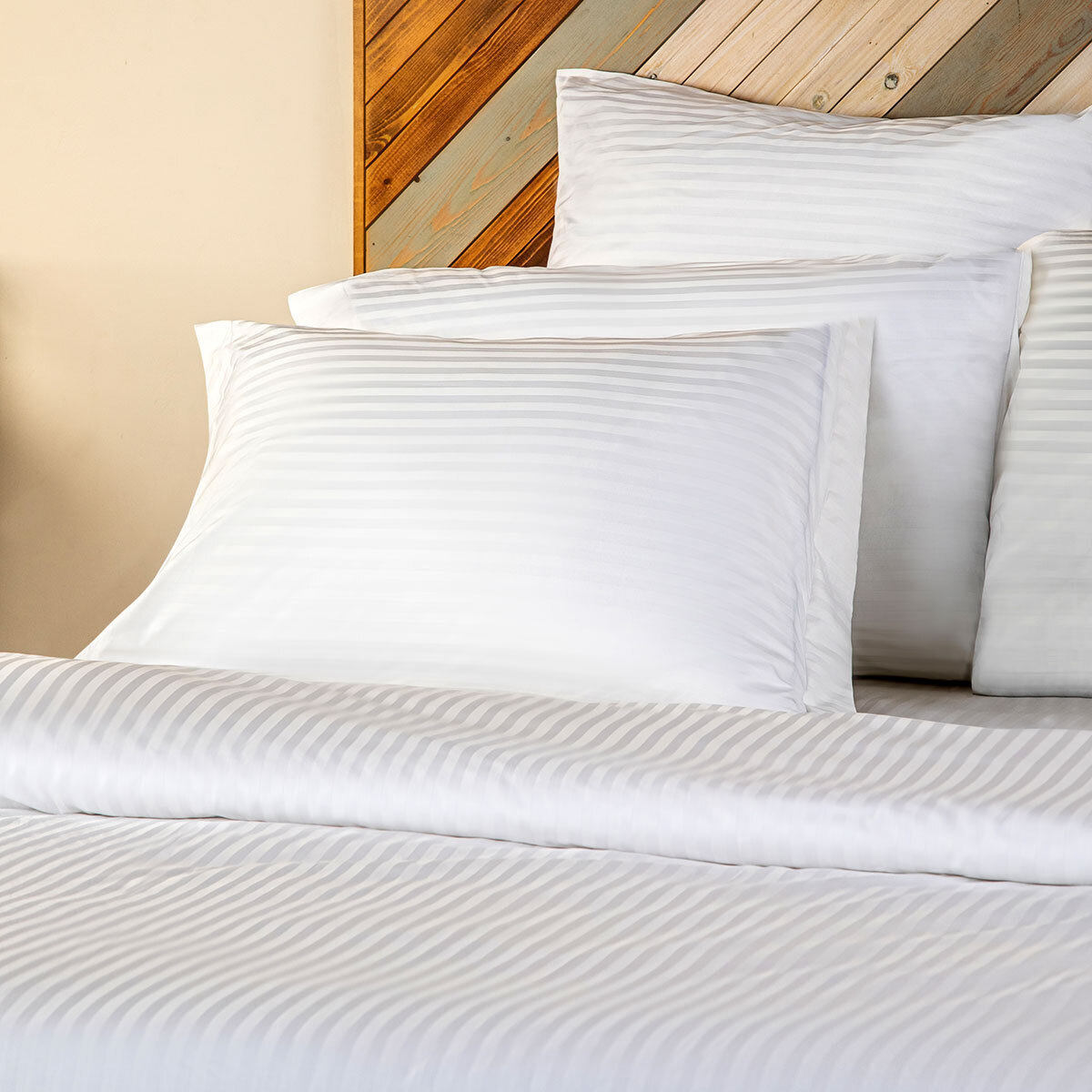 Пододеяльник выполнен в белом цвете. Белый цвет добавляет изысканности и гармонии интерьеру спальни и располагает к безмятежному отдыху. Выбитый рисунок в виде контрастных полос с матовой и глянцевой поверхностью придает изделию роскошный и элегантный вид.