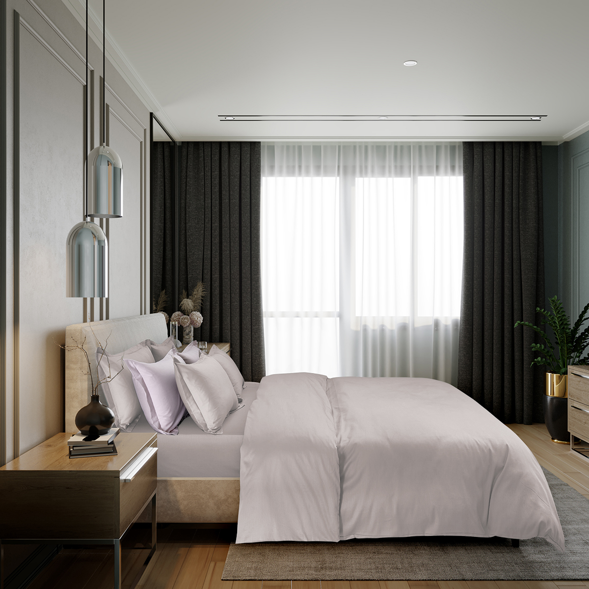 Пододеяльник выполнен в пудро-розовом цвете. Пудровый цвет добавляет изысканности и гармонии интерьеру спальни и располагает к безмятежному отдыху.