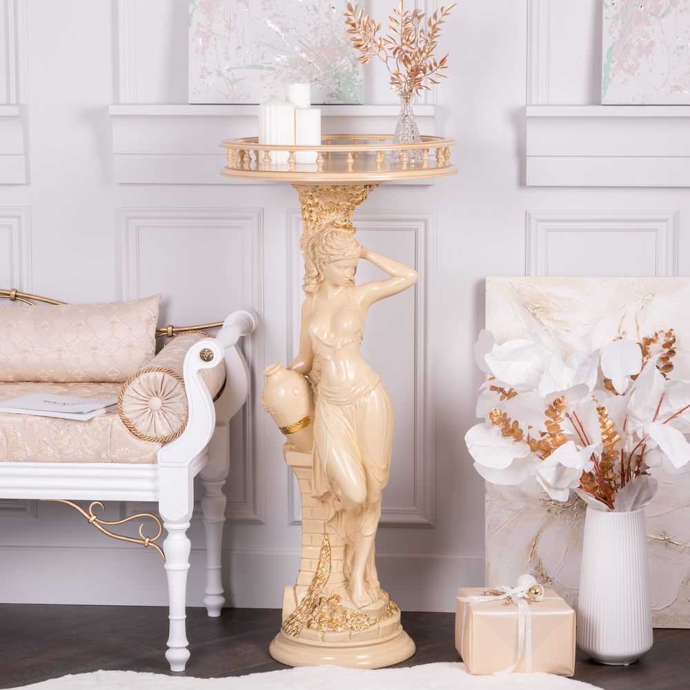 Материалы изготовления и размеры изделияИзделие производится из высококачественного коелгинского мрамора, который привозится в виде мраморной крошки, затем отливается вручную и подвергается дополнительной обработке — патинированию и золочению поталью.