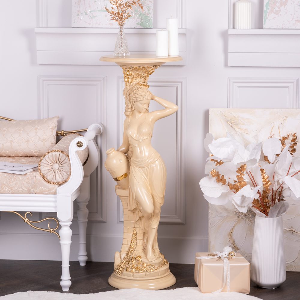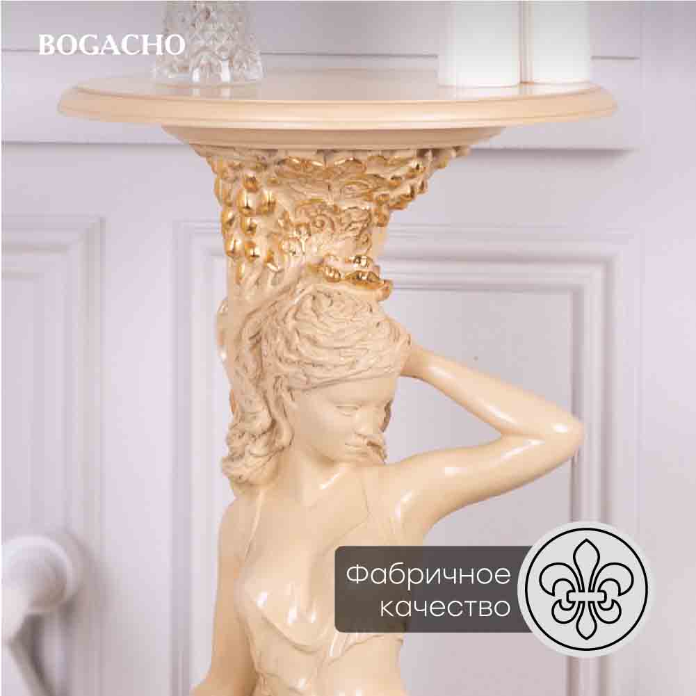Материалы изготовления и размеры изделияИзделие производится из высококачественного коелгинского мрамора, который привозится в виде мраморной крошки, затем отливается вручную и подвергается дополнительной обработке — патинированию и золочению поталью.