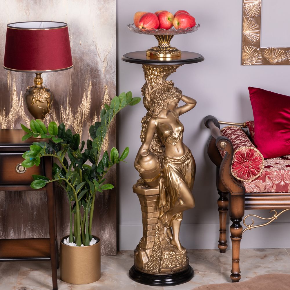 Материалы изготовления и размеры изделияИзделие производится из высококачественного коелгинского мрамора, который привозится в виде мраморной крошки, затем отливается вручную и подвергается дополнительной обработке — патинированию и золочению поталью.