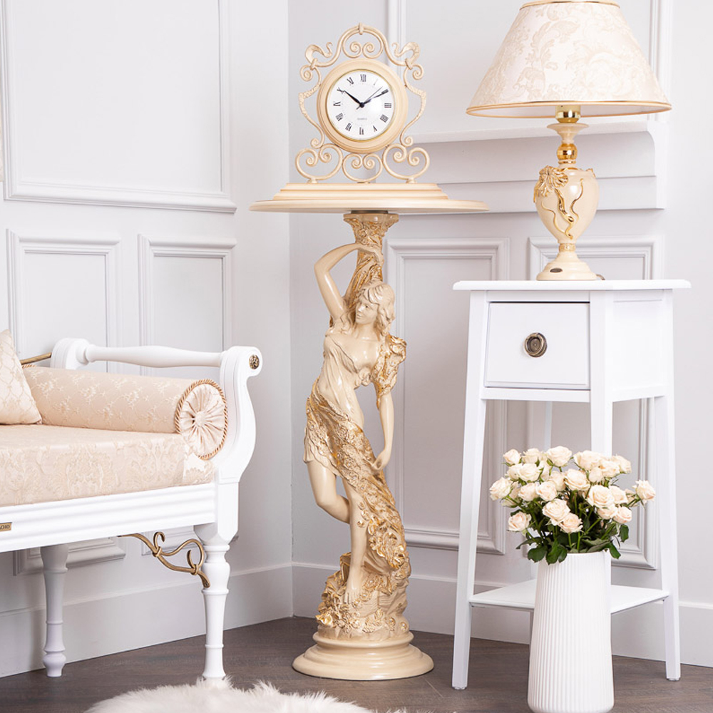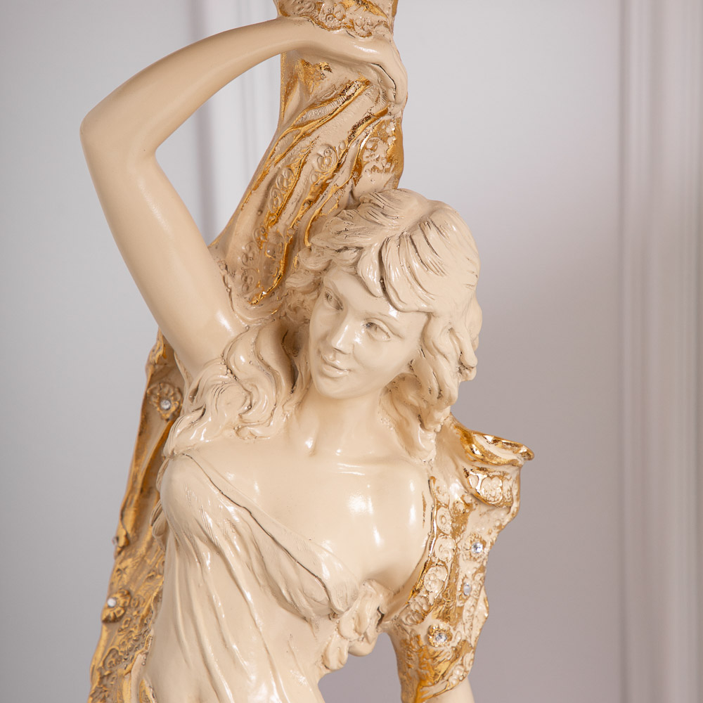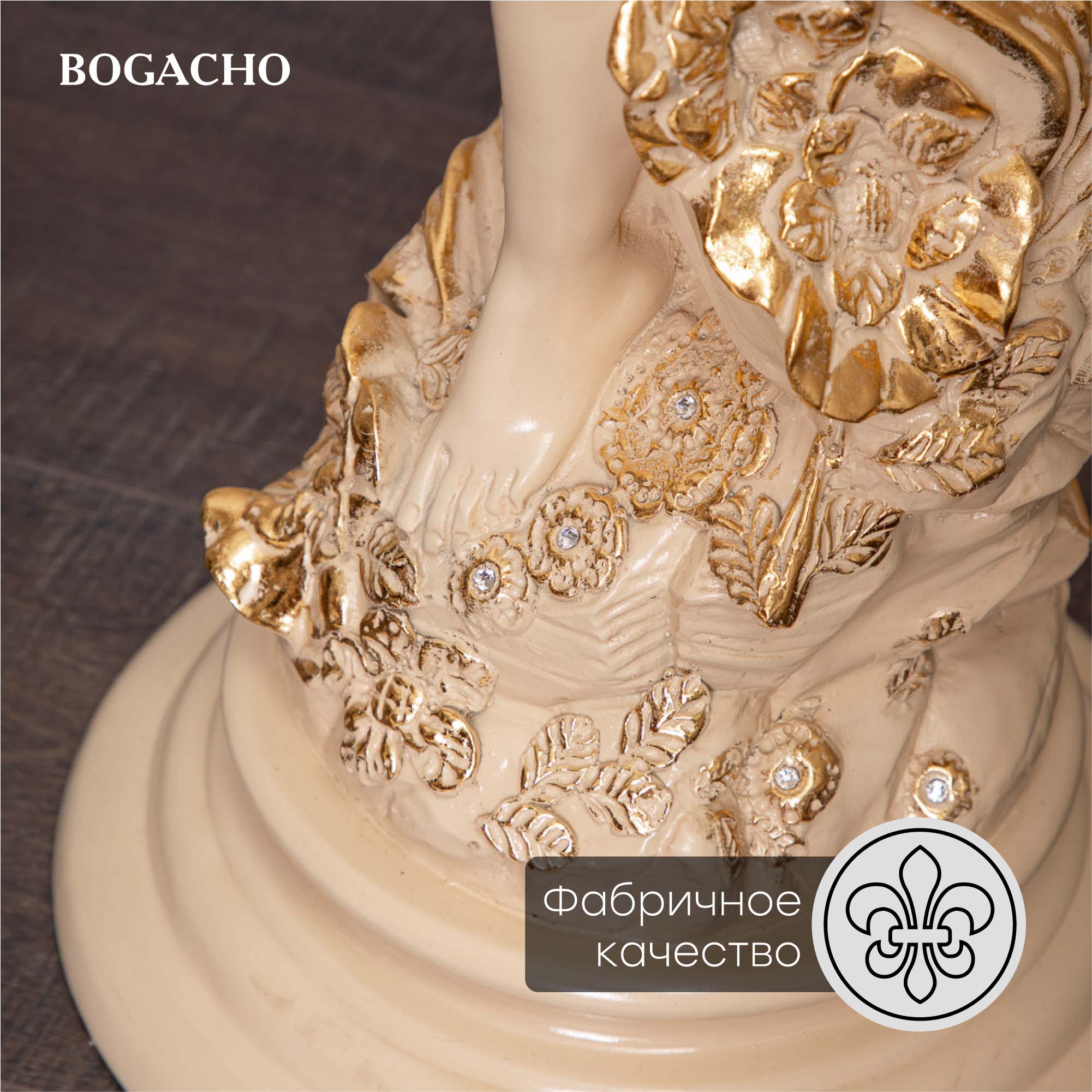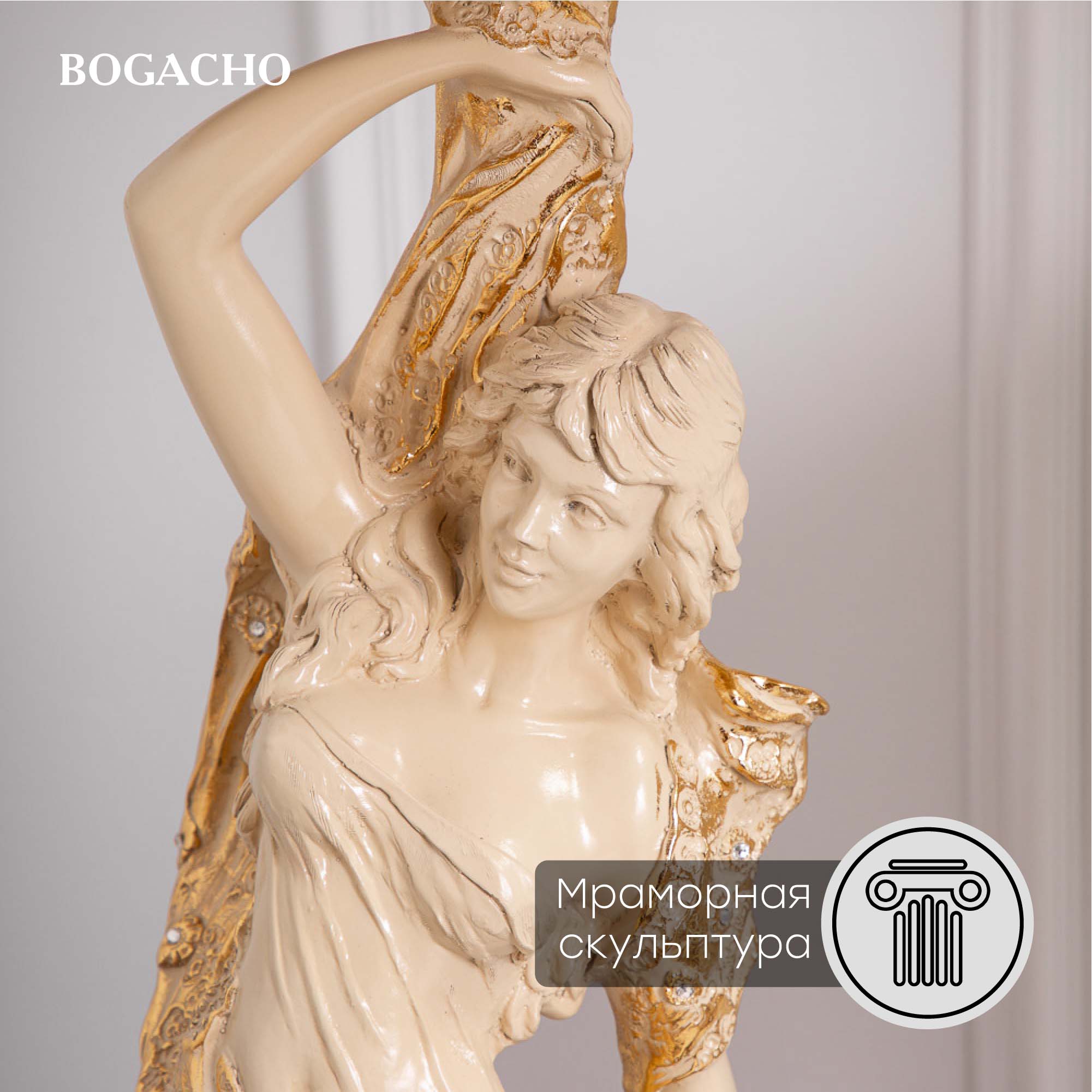 Материалы изготовления и размеры изделияИзделие производится из высококачественного коелгинского мрамора, который привозится в виде мраморной крошки, затем отливается вручную и подвергается дополнительной обработке — патинированию и золочению поталью.