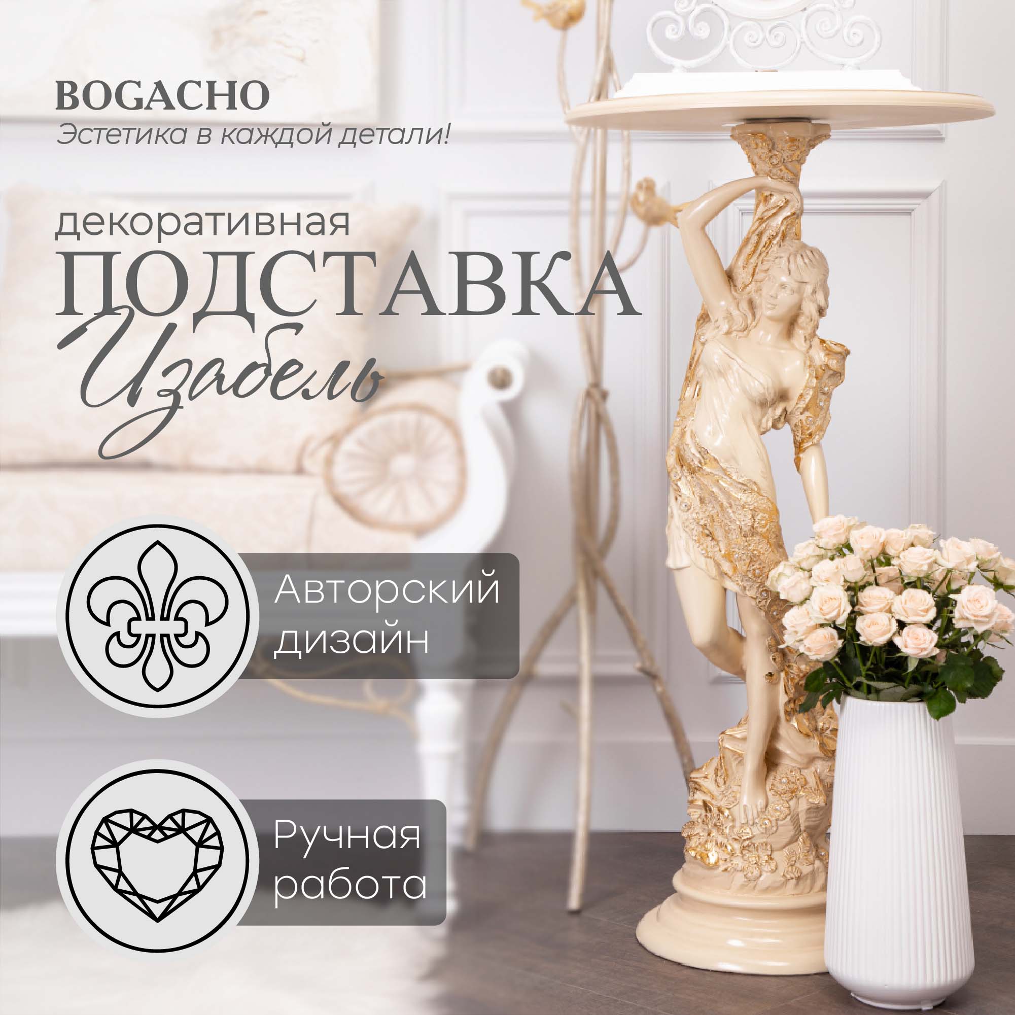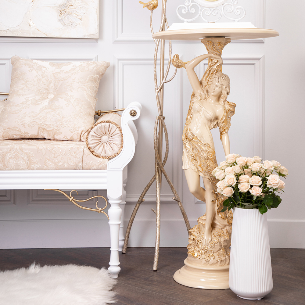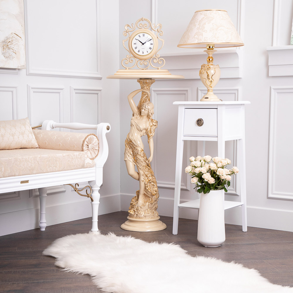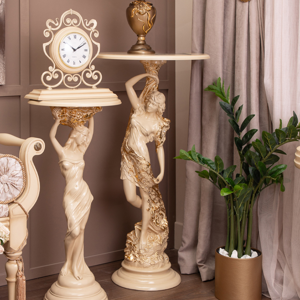 Материалы изготовления и размеры изделияИзделие производится из высококачественного коелгинского мрамора, который привозится в виде мраморной крошки, затем отливается вручную и подвергается дополнительной обработке — патинированию и золочению поталью.